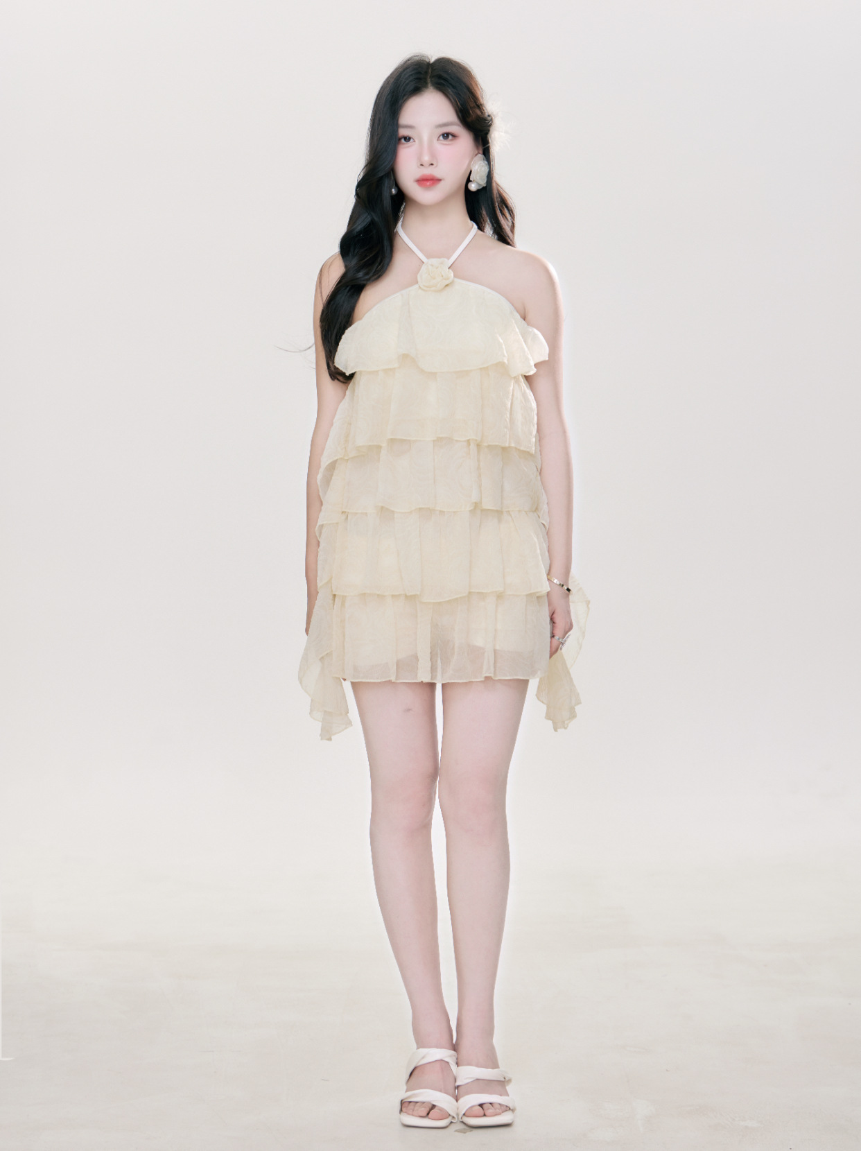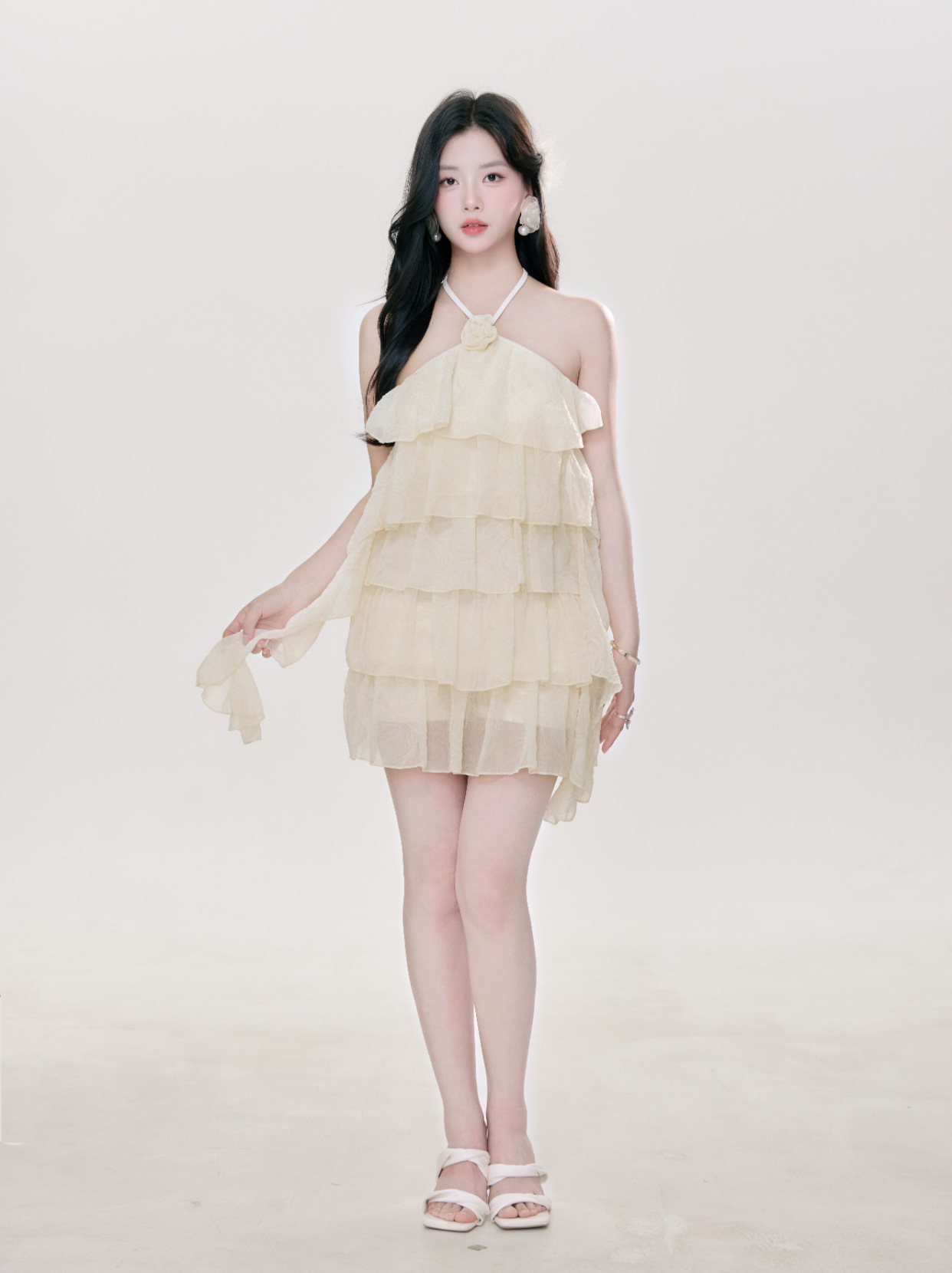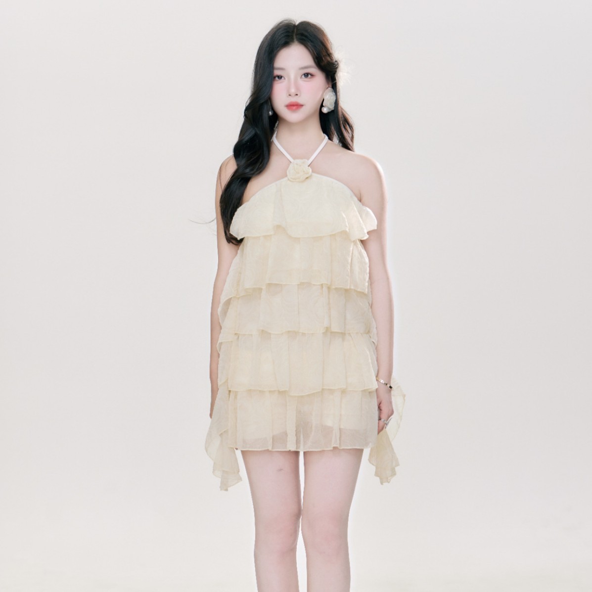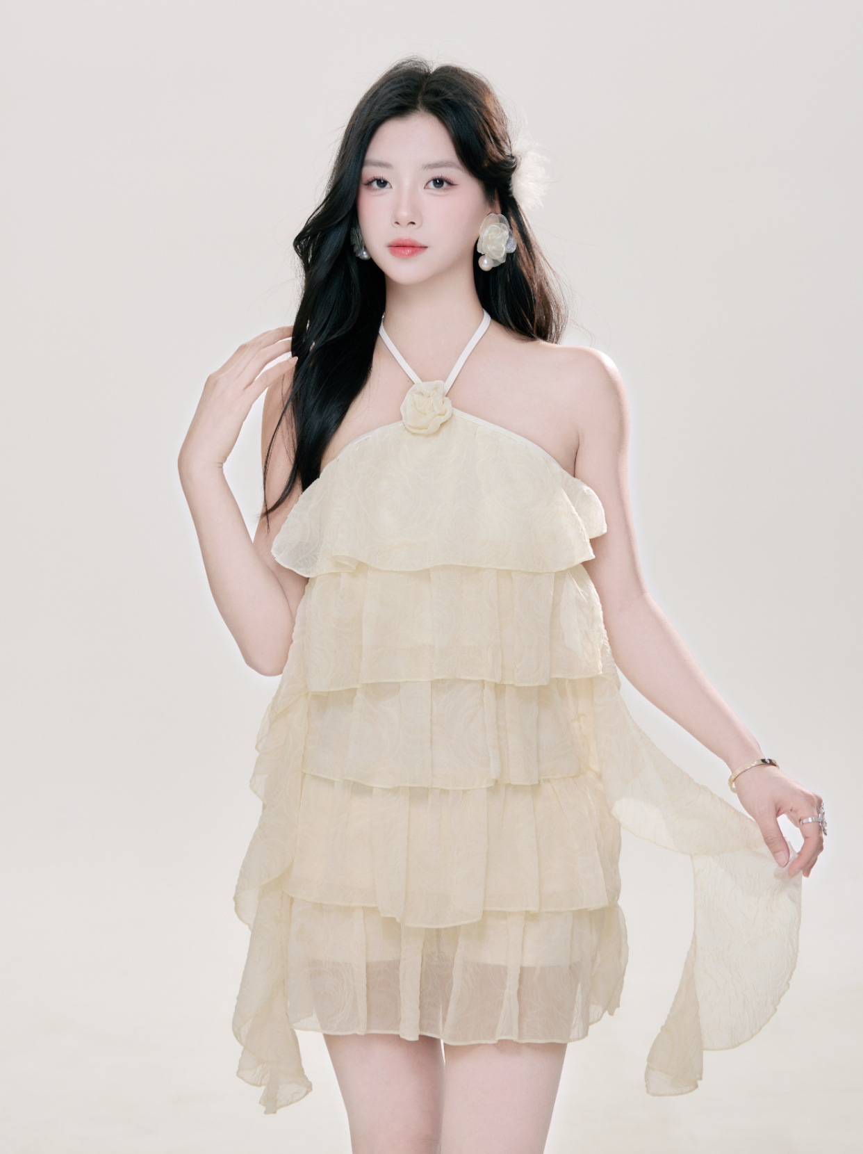 온천 수영복 여성용 순수한 매력 입체 꽃무늬 슬림핏 홀터넥 패셔너블한 핫걸 슬림핏 러플 스티치 케이크 스커트스토어 가기