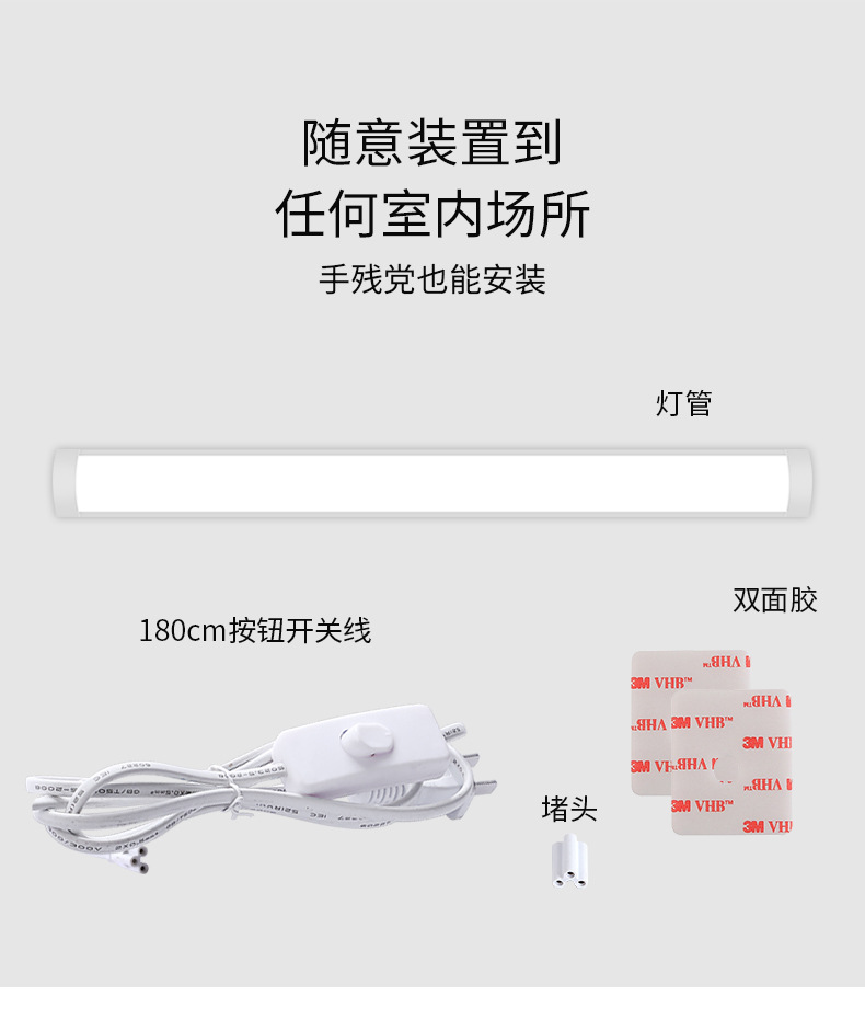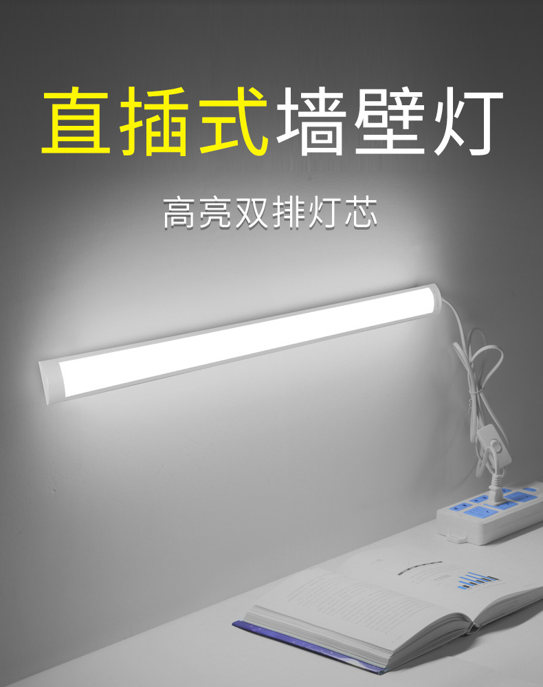 LED 라이트 스트립 튜브 직접 플러그인 플러그인 기숙사 벽 실내 조명 매우 밝은 설치가 필요없는 방 침실