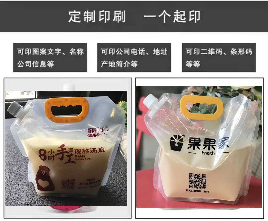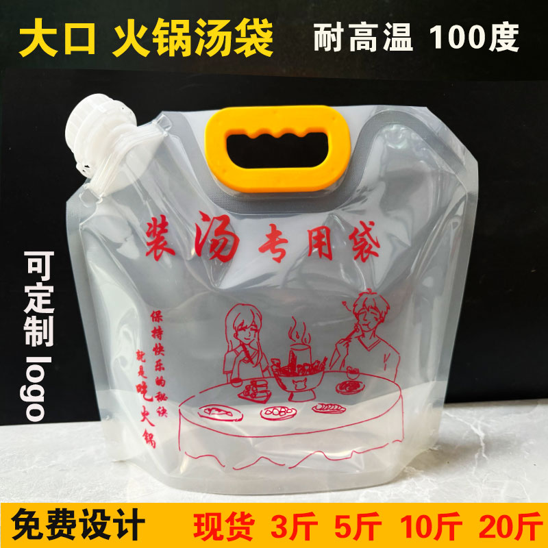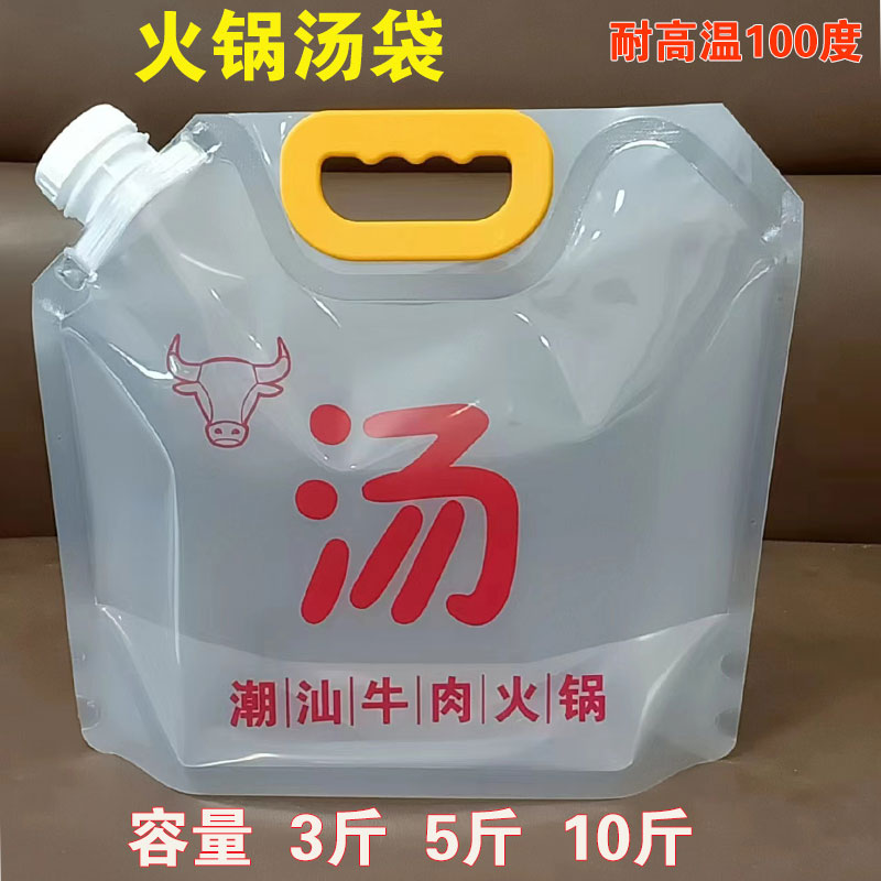 냄비 수프 베이스 포장 백, 두꺼운 플라스틱 휴대용 식품 등급 투명 노즐 맥주 달팽이 국수 테이크아웃 포장 백