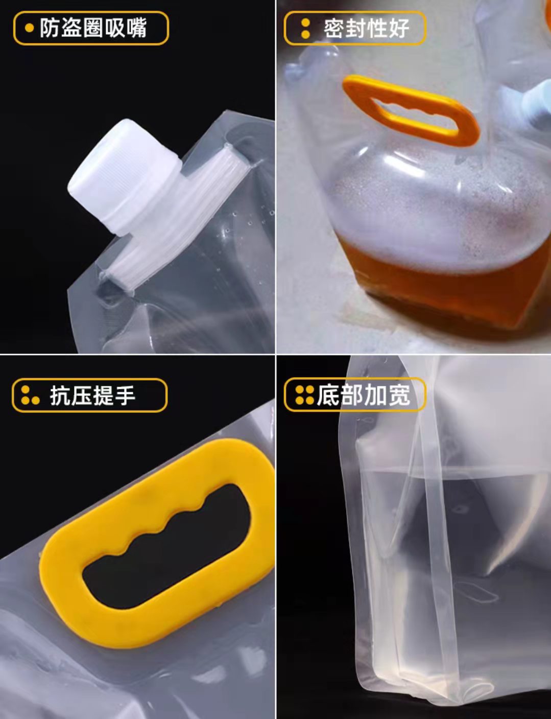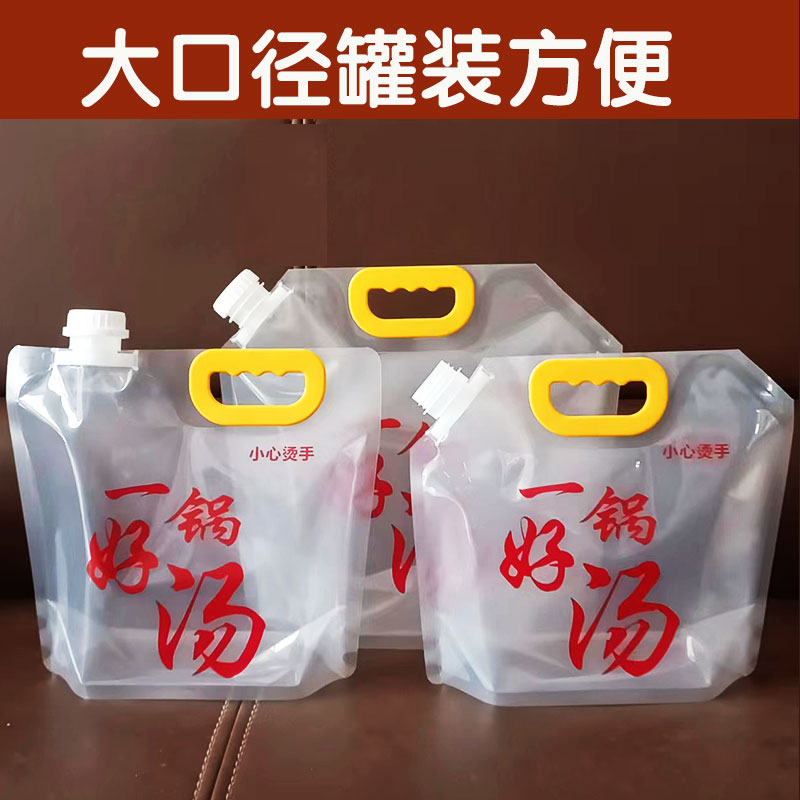 냄비 수프 베이스 포장 백, 두꺼운 플라스틱 휴대용 식품 등급 투명 노즐 맥주 달팽이 국수 테이크아웃 포장 백스토어 가기