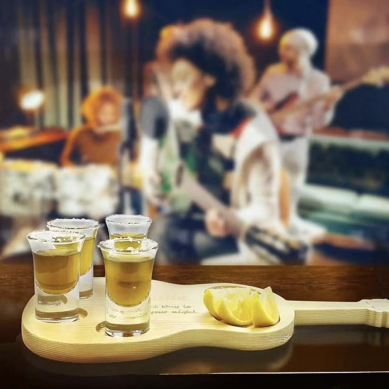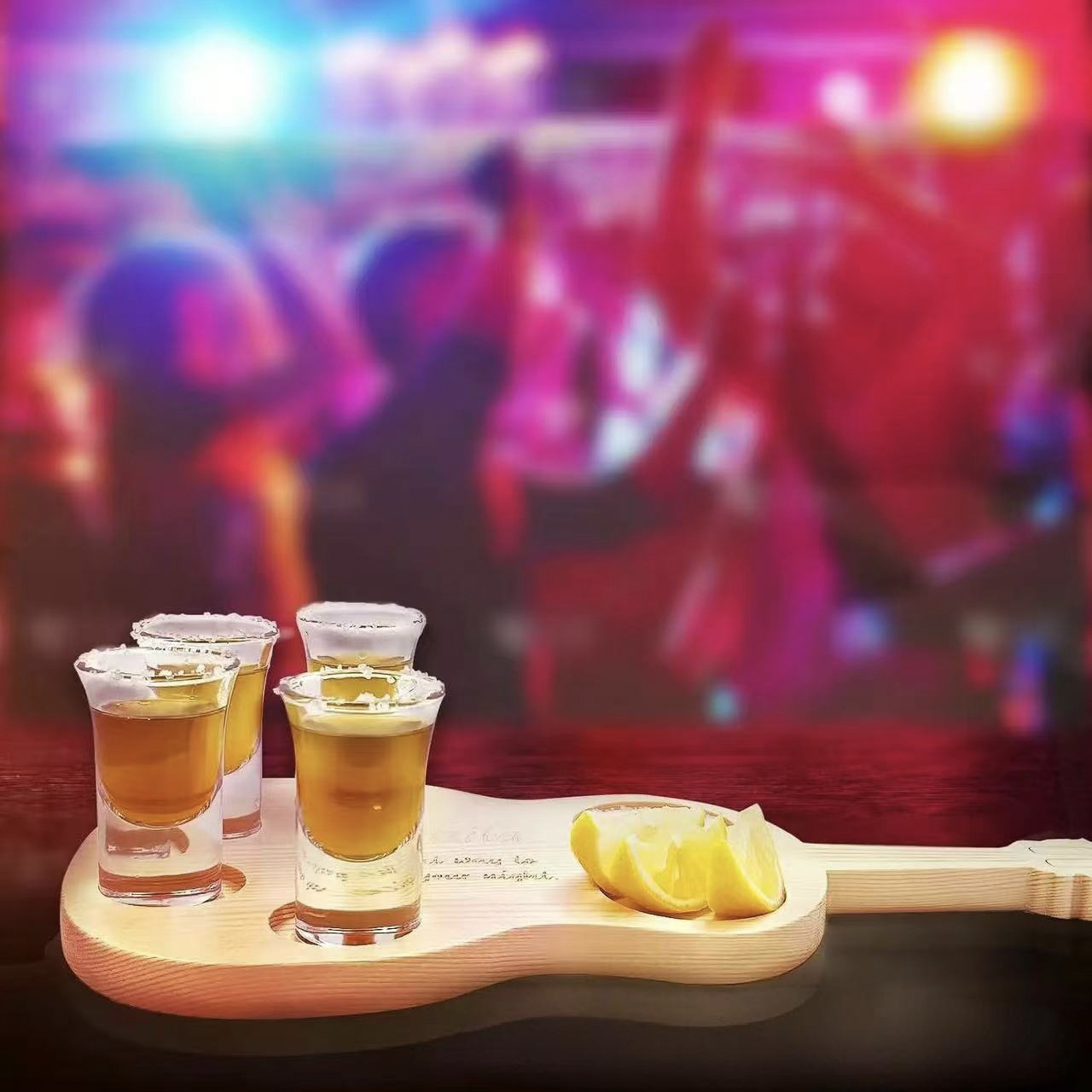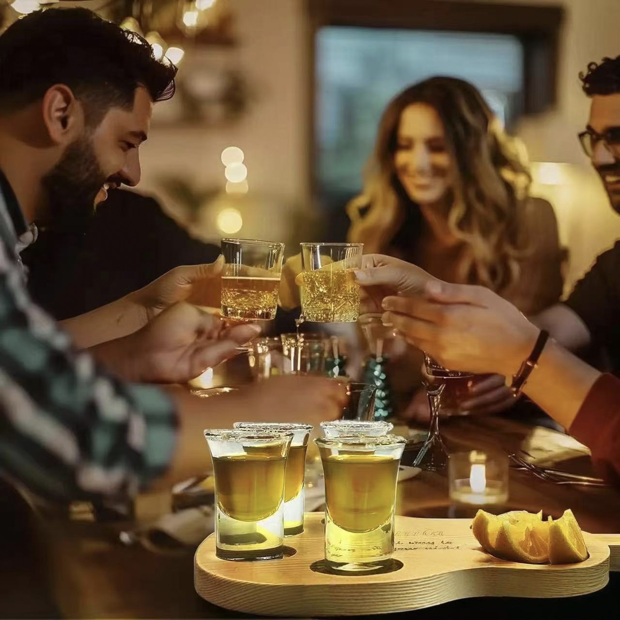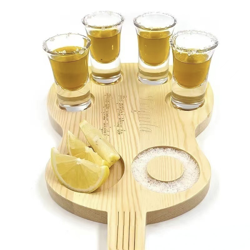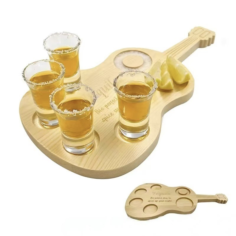 국경 간 단단한 나무 트레이 기타 모양의 와인 잔 보관 트레이 위스키 분할 소금 트레이 나무 컵 홀더 트레이
