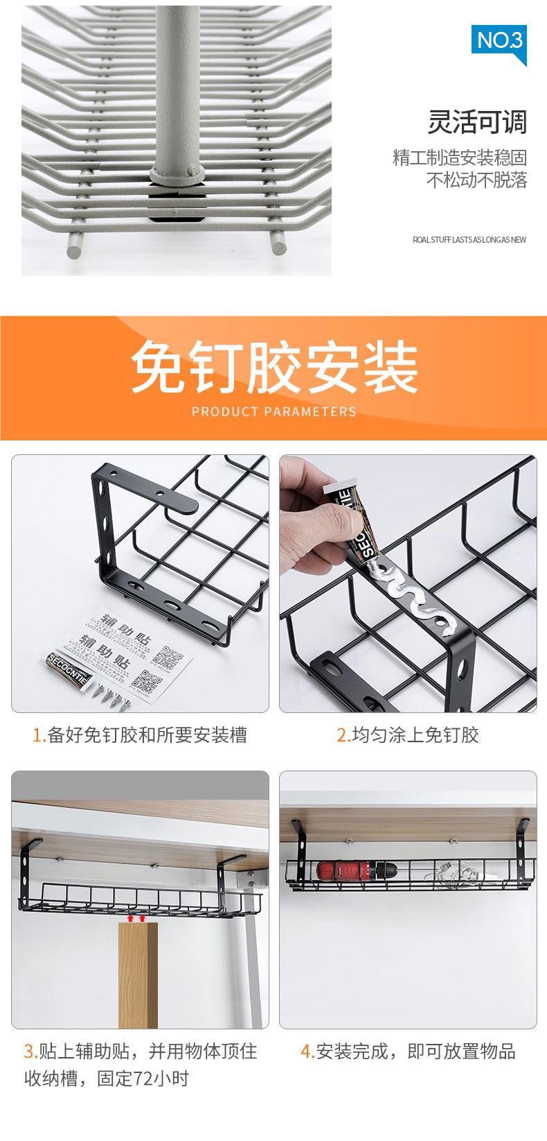 책상 밑 수납 선반, 전선 수납 슬롯, 책상 밑 전원 스트립 수납 선반, 책상 전선 스트립 정리함스토어 가기