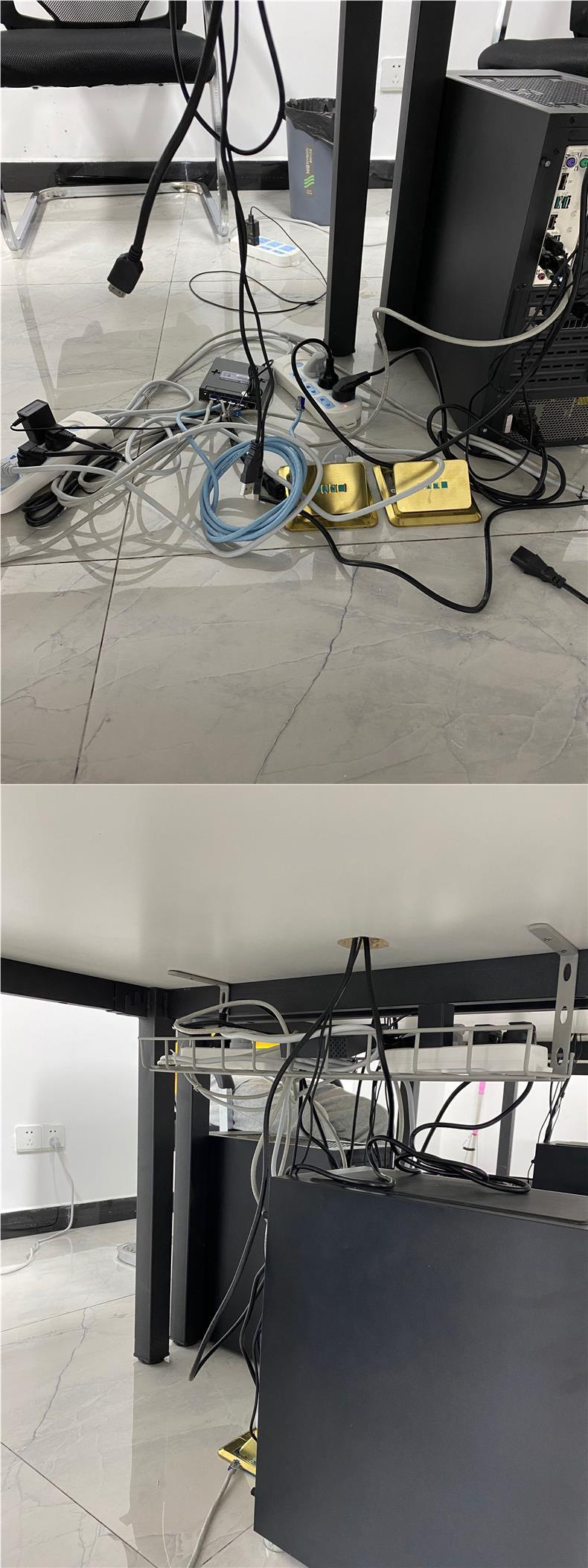 책상 밑 수납 선반, 전선 수납 슬롯, 책상 밑 전원 스트립 수납 선반, 책상 전선 스트립 정리함