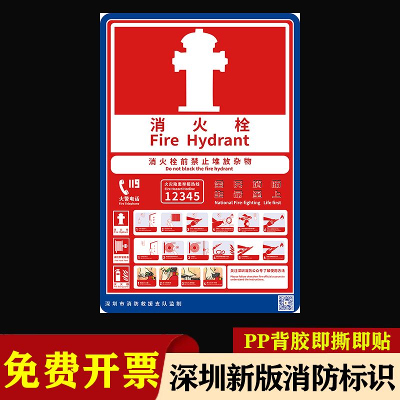 深圳新版国标消防安全标识牌 灭火器消火栓使用说明标识牌标识贴