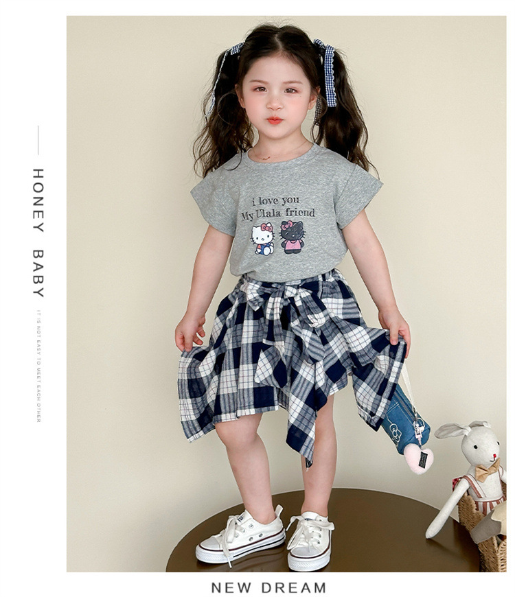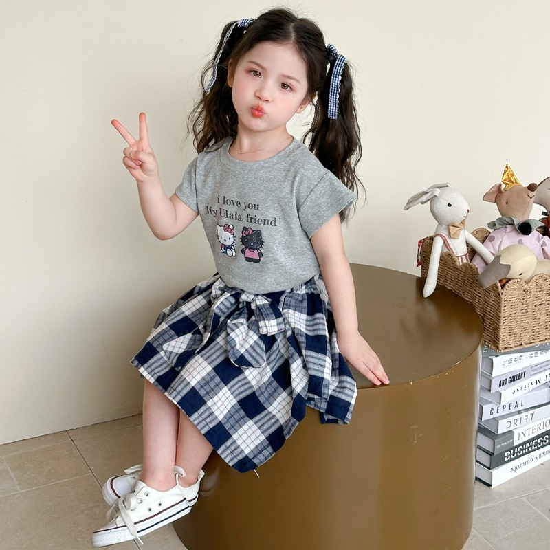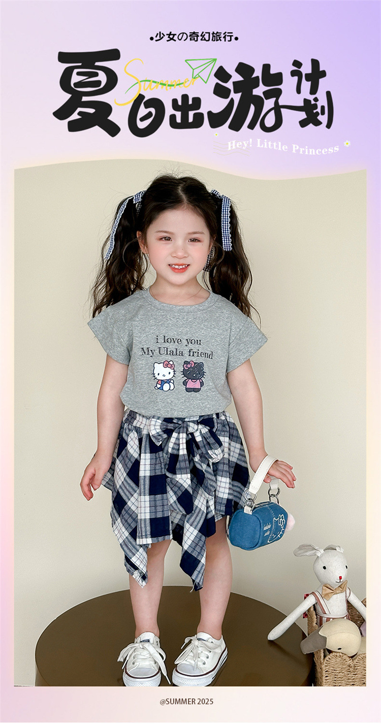 여자 조끼 세트 여름 2025 새로운 어린이 캐주얼 사랑 유행 아기 소녀를위한 멋진 한국 여름 투피스 세트