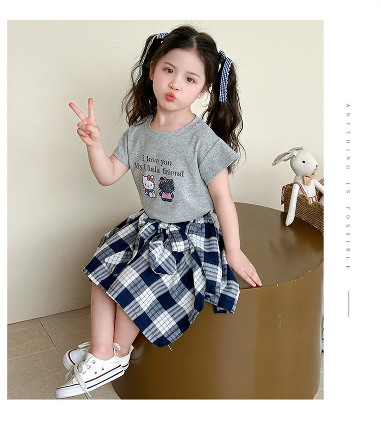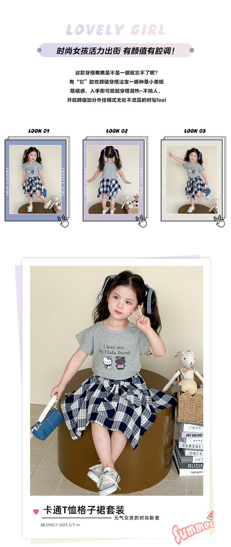 여자 조끼 세트 여름 2025 새로운 어린이 캐주얼 사랑 유행 아기 소녀를위한 멋진 한국 여름 투피스 세트스토어 가기