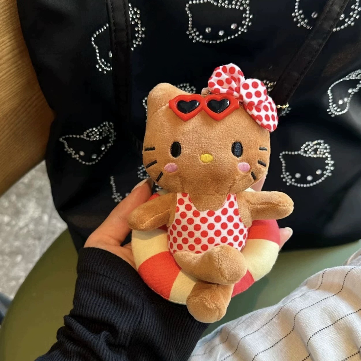 블랙 가죽 하와이안 비키니 펜던트 봉제 인형 헬로 키티 Kt 키 체인 펜던트스토어 가기