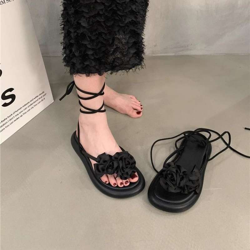 스커트와 발목 스트랩이 있는 여성용 두꺼운 밑창 프렌치 샌들, 여름 로마 스타일 꽃 요정 신발, 플립플롭스토어 가기