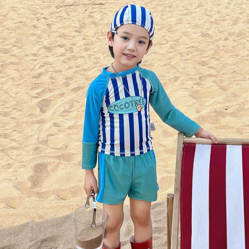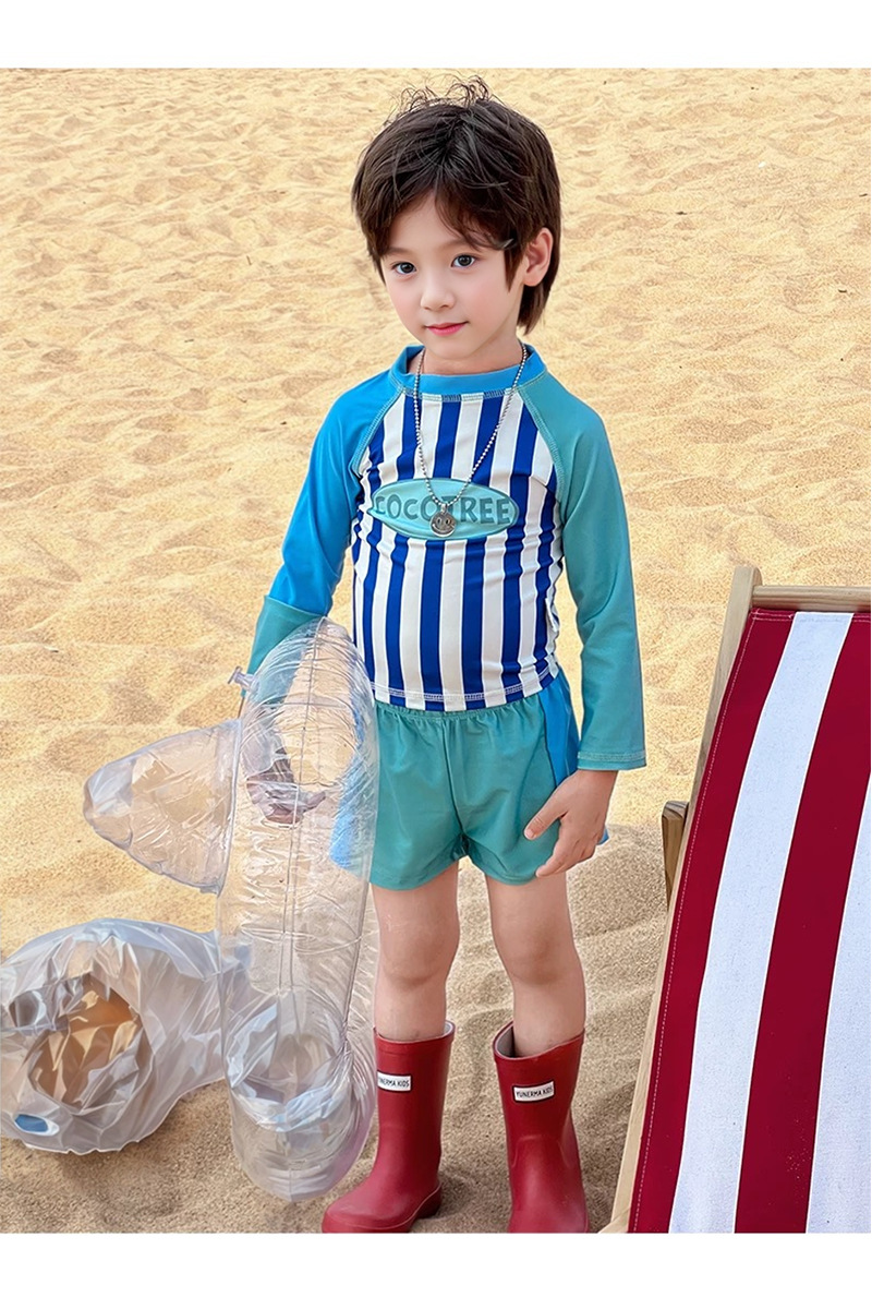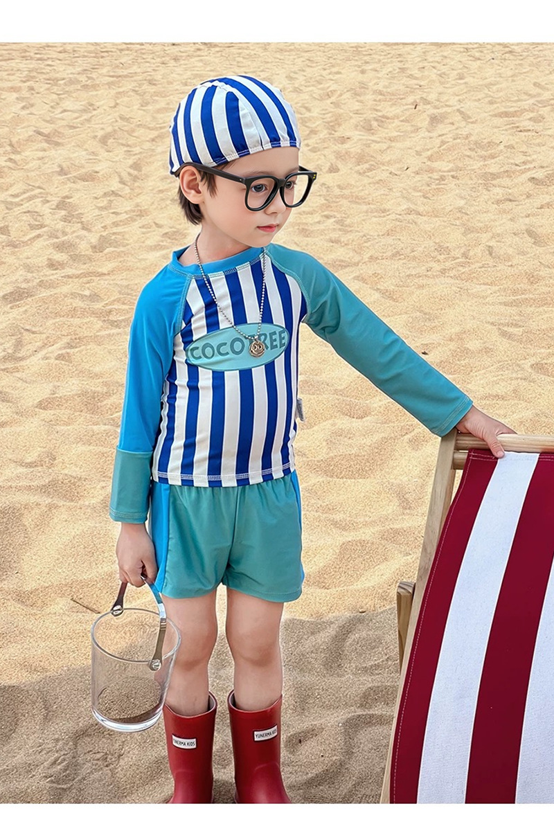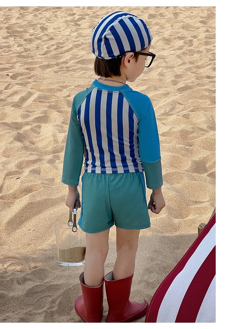 어린이 수영복 소년 어린이 폴리 에스터 스포츠 레저 스플릿 투피스 세트 긴 소매 레트로 스트라이프 온천 수영복스토어 가기