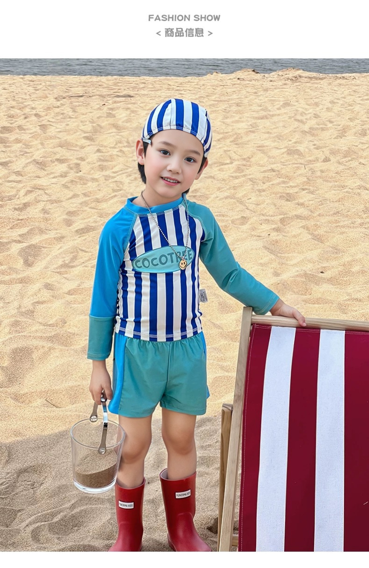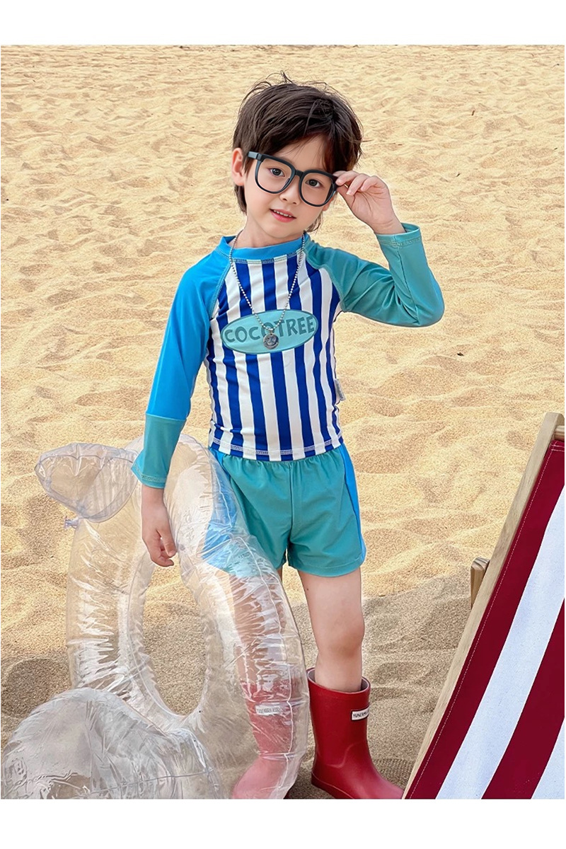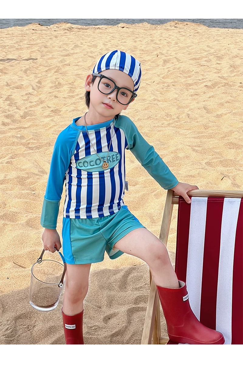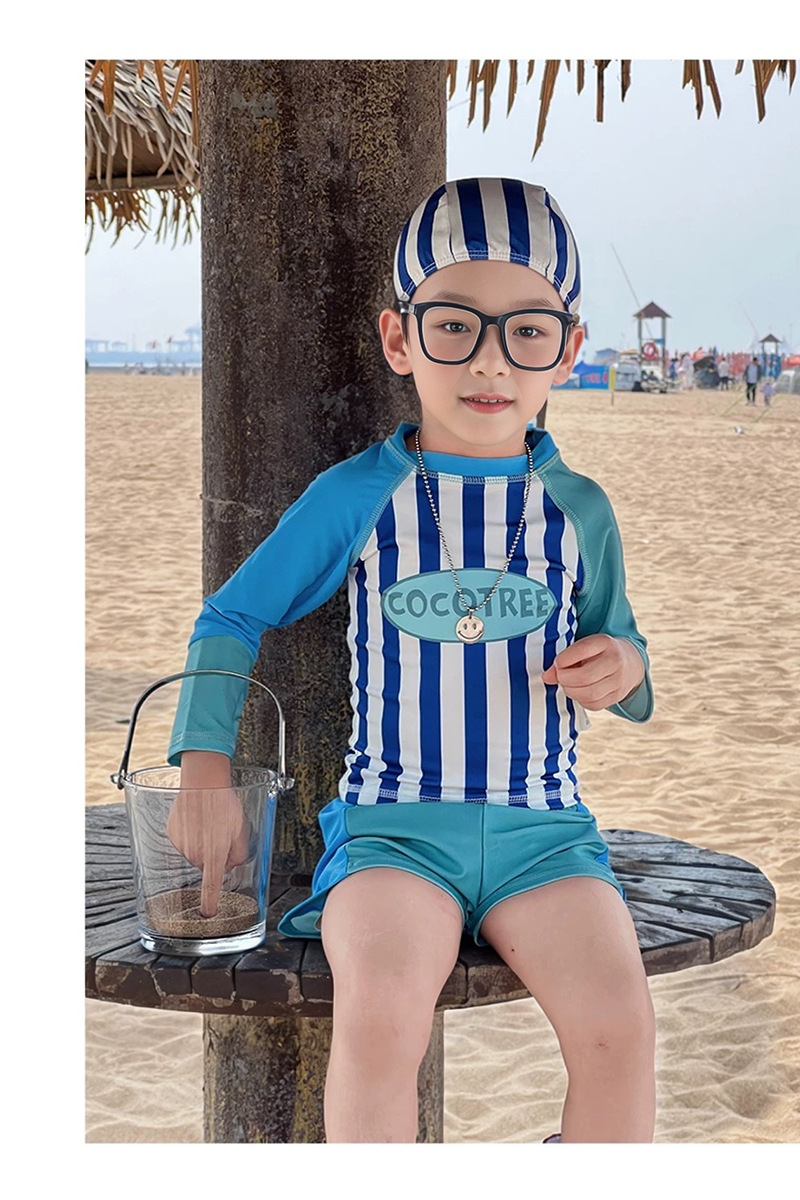 어린이 수영복 소년 어린이 폴리 에스터 스포츠 레저 스플릿 투피스 세트 긴 소매 레트로 스트라이프 온천 수영복스토어 가기