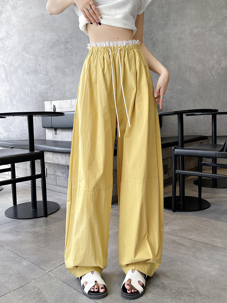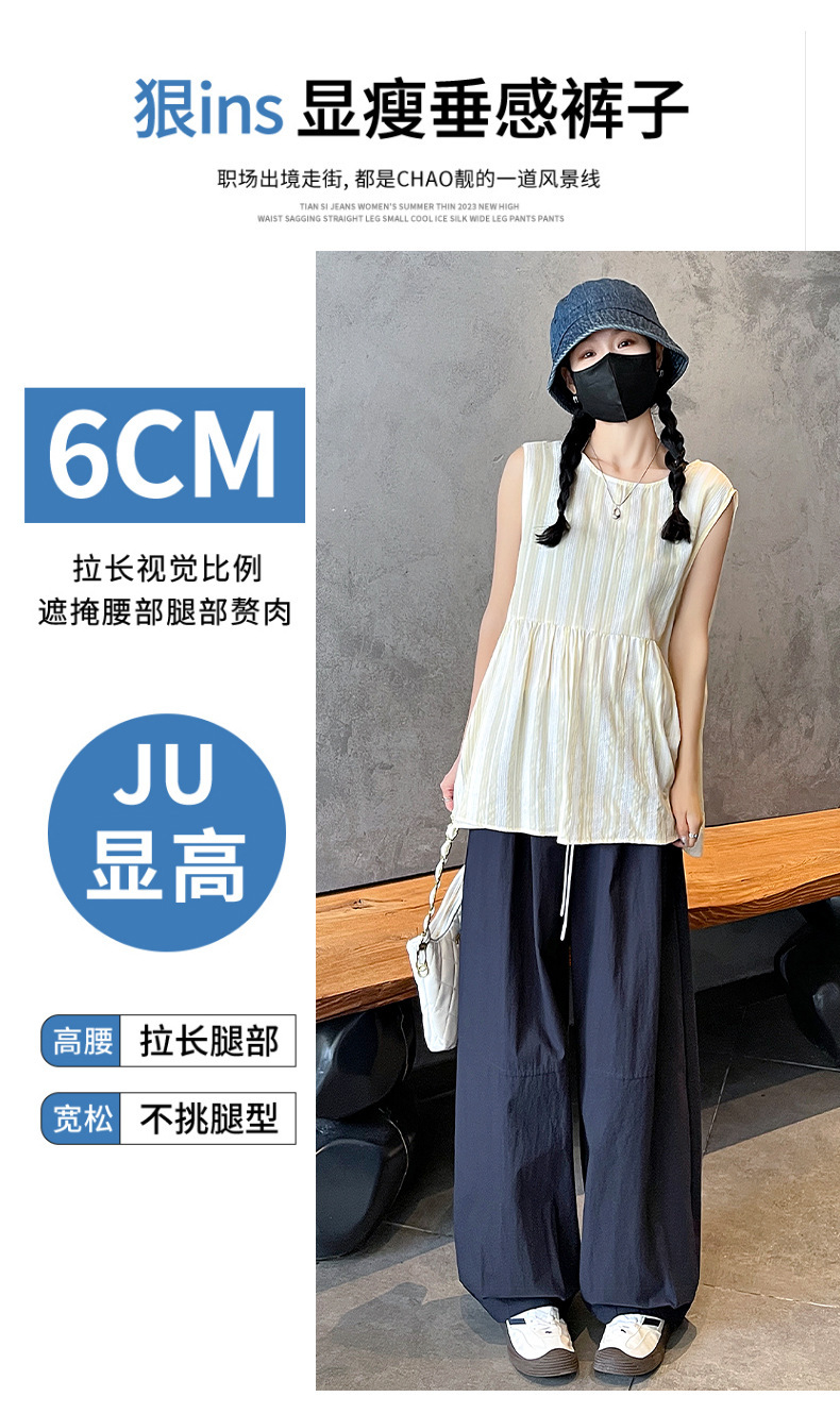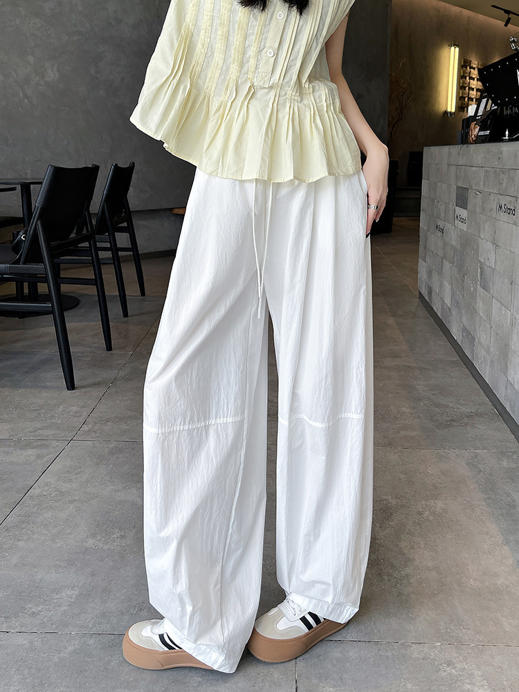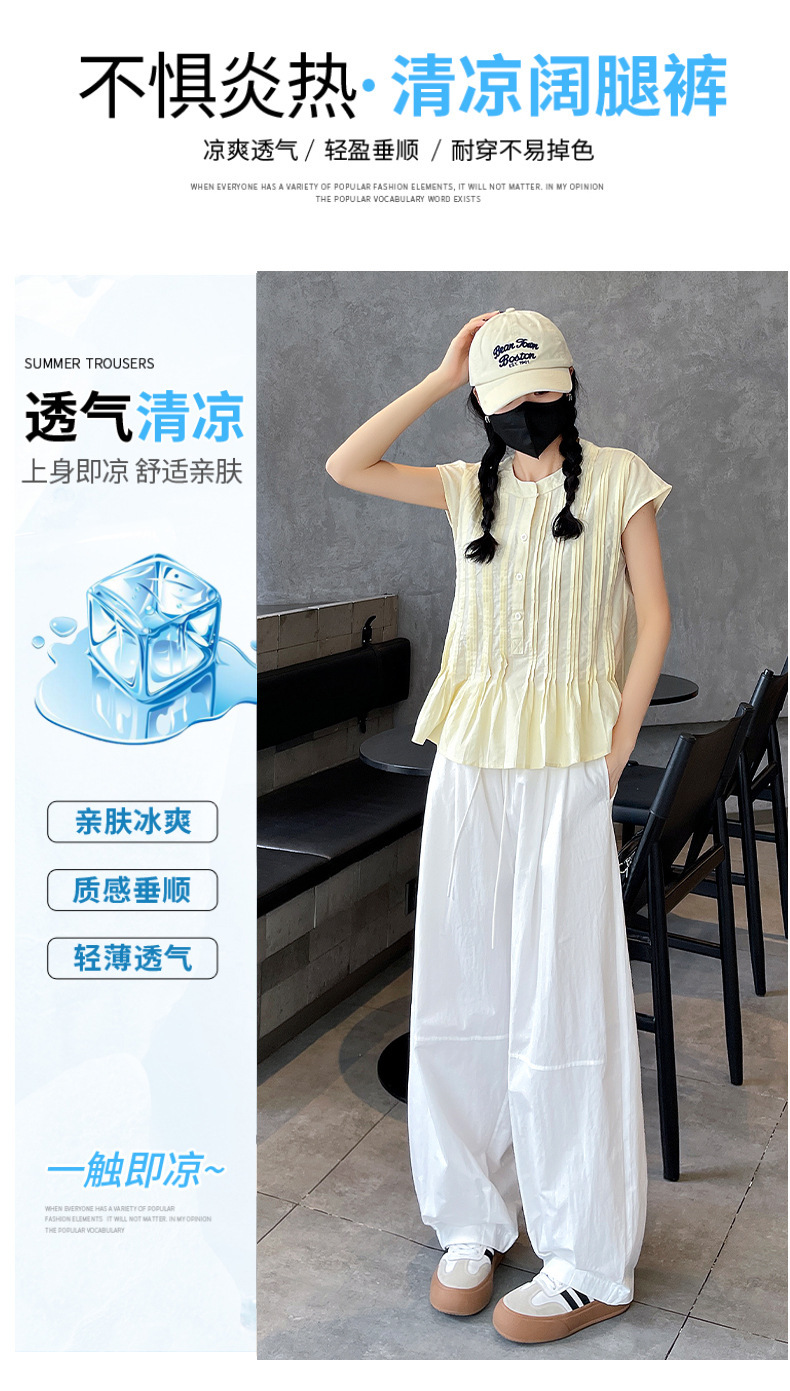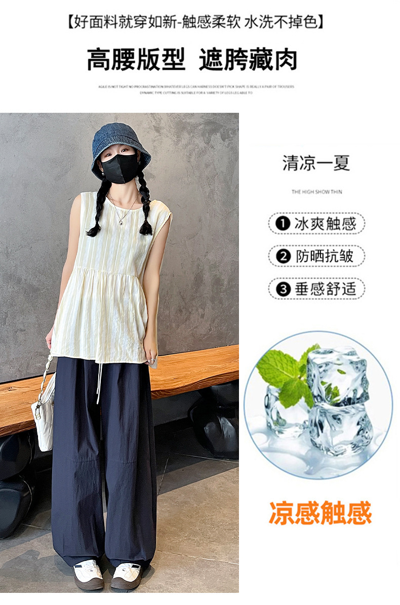2025 여름 새로운 아이스 실크 풍선 바지 할란 스트레이트 바지 여성의 빠른 건조 얇은 슬리밍 원추형 선 스크린 캐주얼 바지스토어 가기