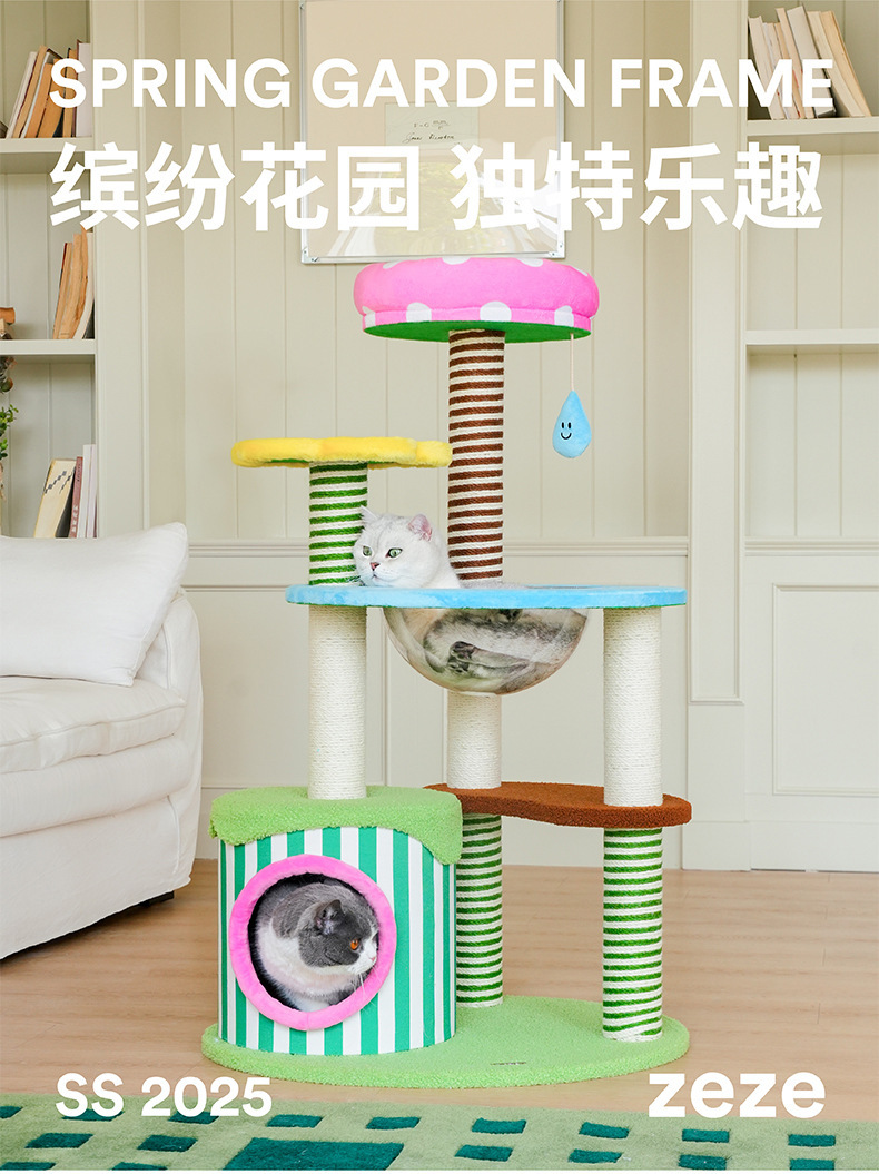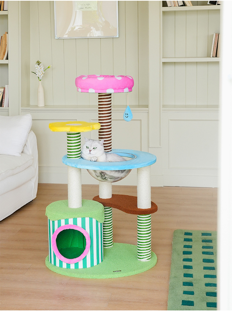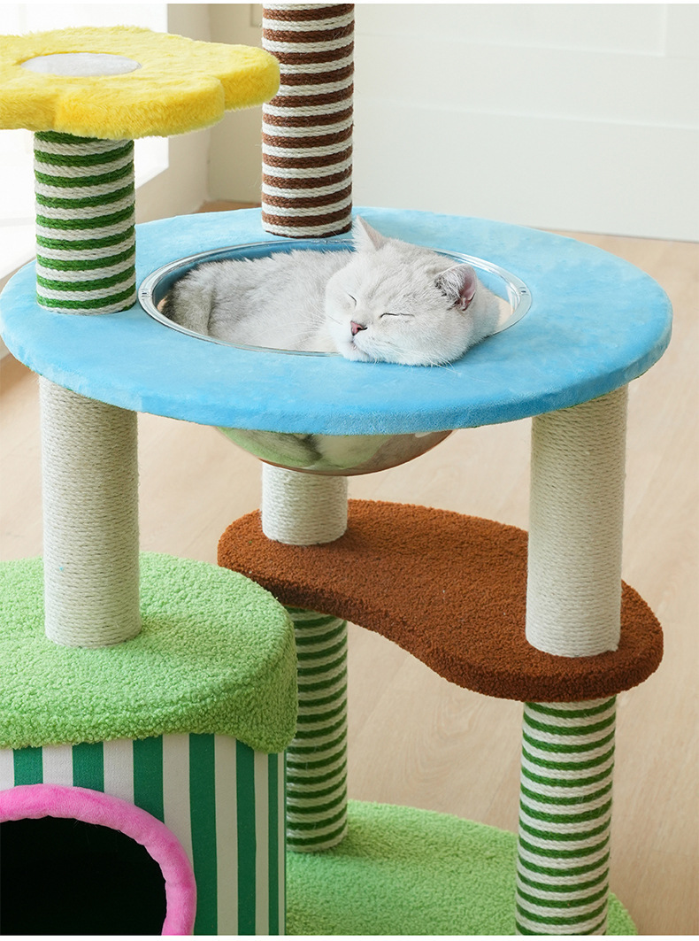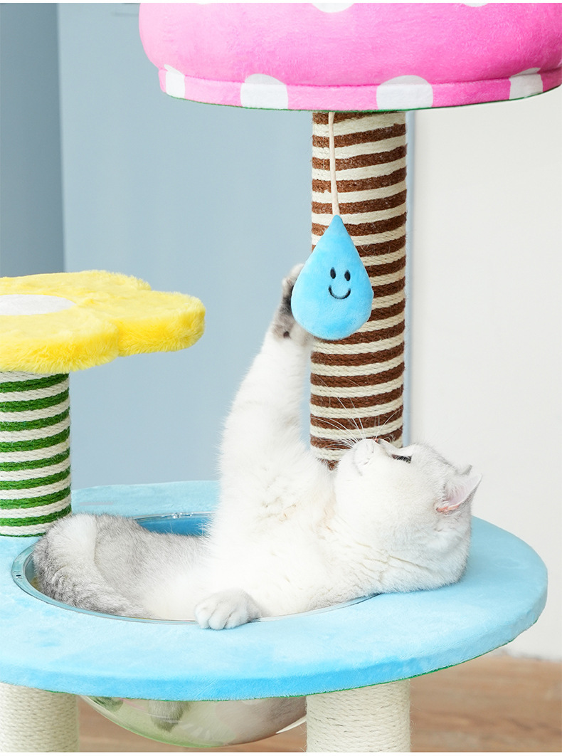 제제 꽃이 피어있는 놀이공원 고양이 클라이밍 프레임, 고양이 둥지 및 스크래치 컬럼이 하나로 통합되어 공간을 차지하지 않으며 점프 플랫폼과 대형 고양이를 위한 대형 관찰대, 여러 마리의 고양이도 사용 가능합니다.스토어 가기
