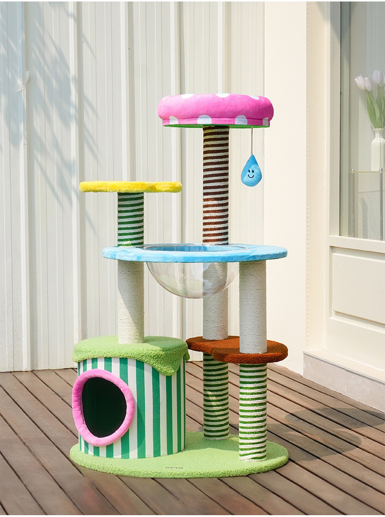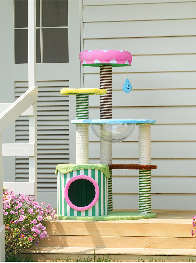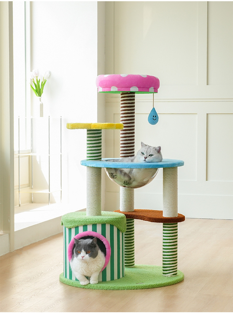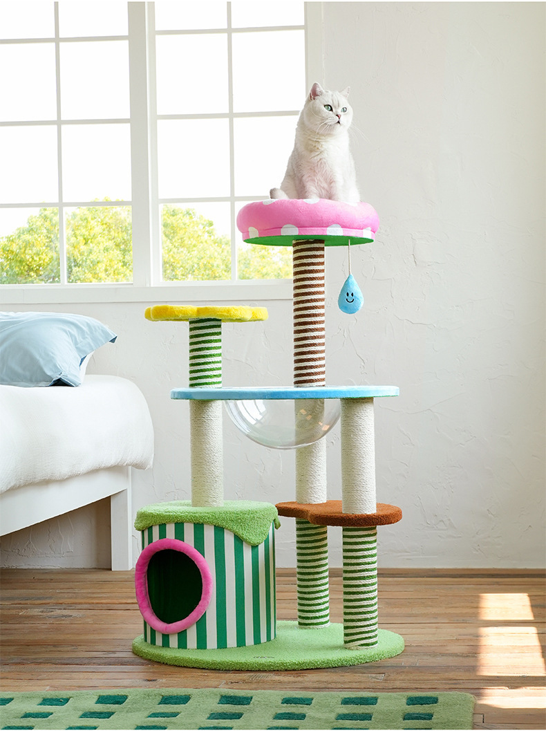 제제 꽃이 피어있는 놀이공원 고양이 클라이밍 프레임, 고양이 둥지 및 스크래치 컬럼이 하나로 통합되어 공간을 차지하지 않으며 점프 플랫폼과 대형 고양이를 위한 대형 관찰대, 여러 마리의 고양이도 사용 가능합니다.스토어 가기