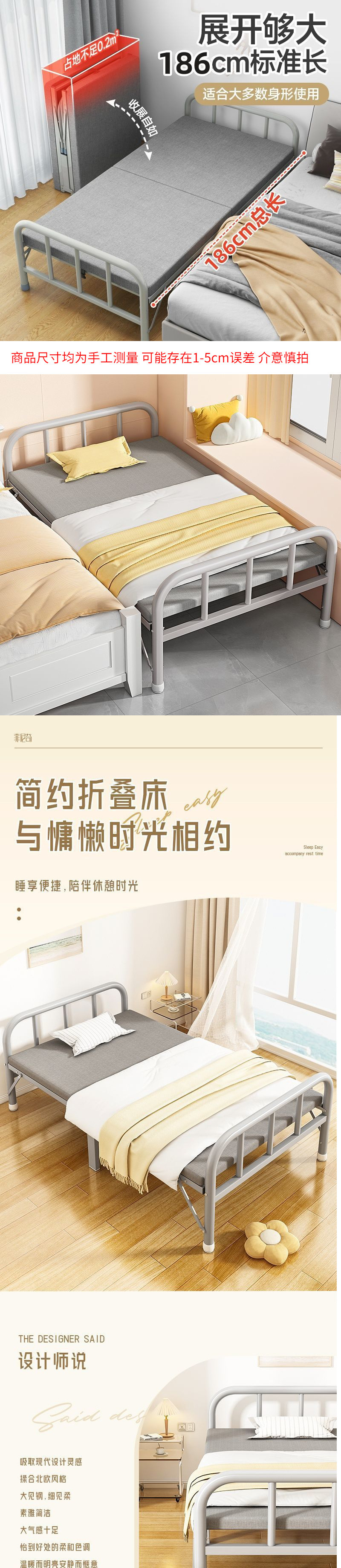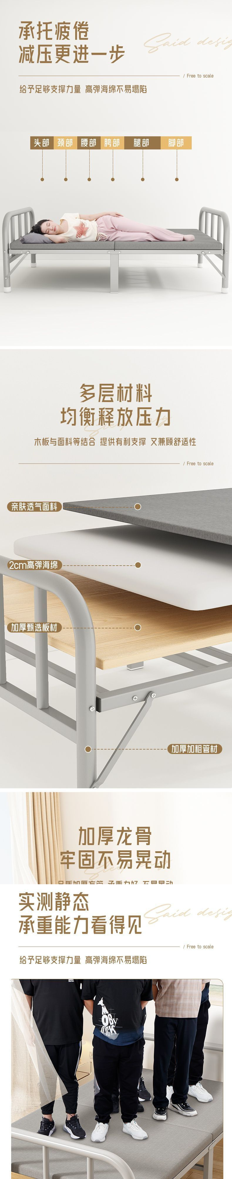 무소음 접이식 침대 싱글 침대 간이 사무실 낮잠 집 성인 유물 기숙사 작은 침대 임대 집 철제 침대스토어 가기