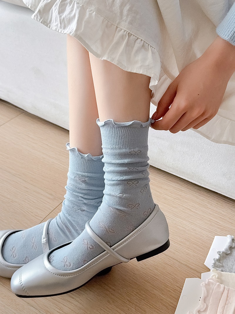여성용 봄 여름 초박형 양말, 메쉬 중공 본리스 리본, 귀중간 양말, 단색 여성용 양말