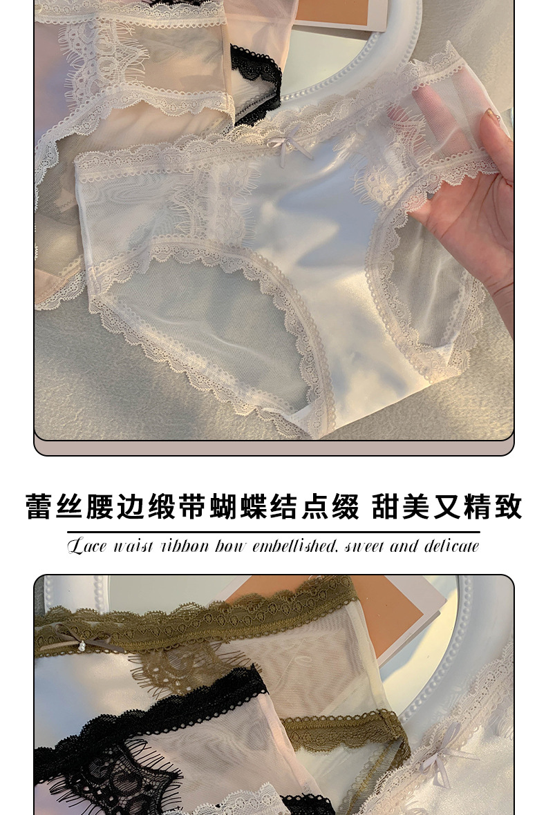 로맨틱 만남 ~ 프랑스 스타일 여성의 얇은 새틴 레이스 여성의 순수한 욕망 섹시한 낮은 허리 속옷 여성의 2025 새로운 스타일스토어 가기