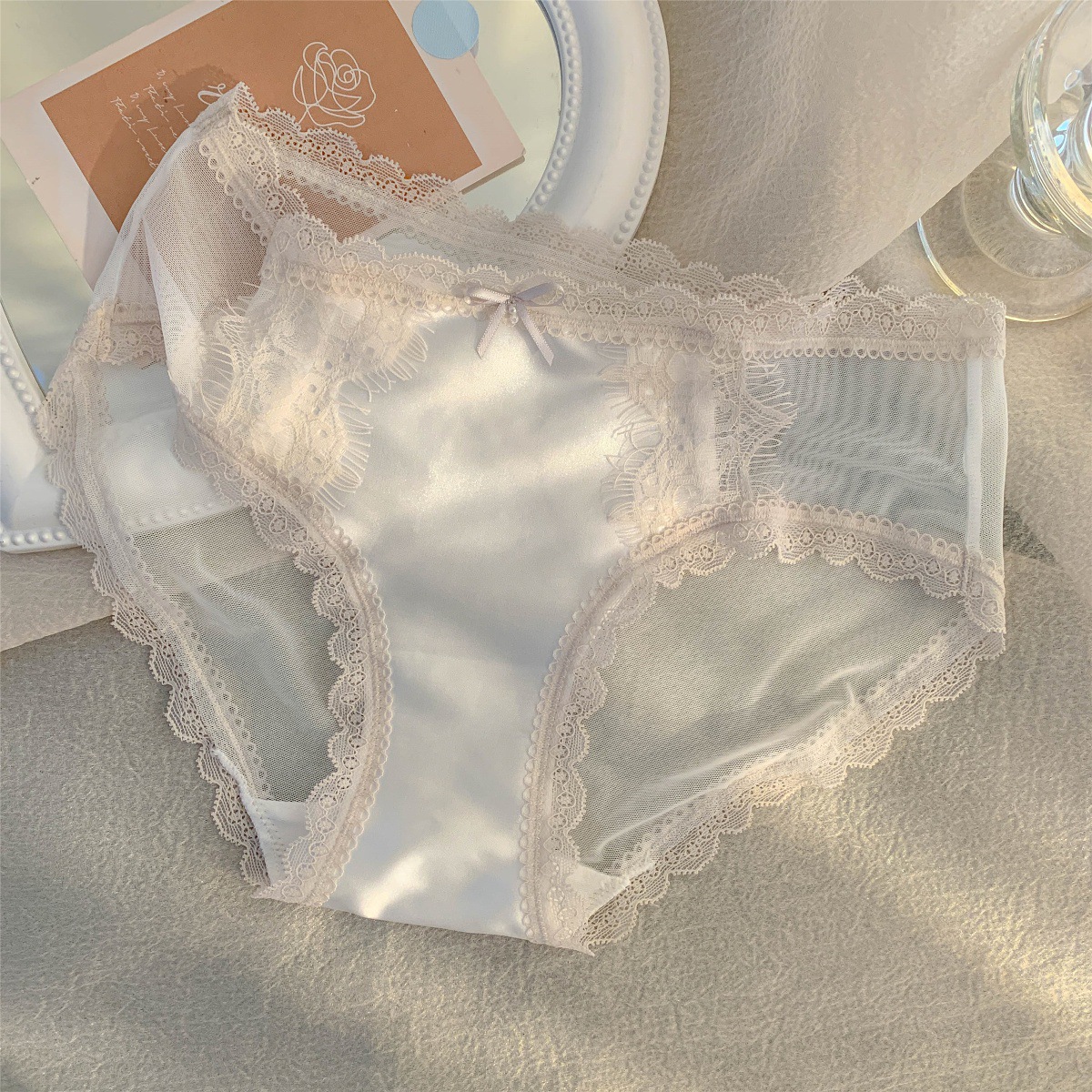 로맨틱 만남 ~ 프랑스 스타일 여성의 얇은 새틴 레이스 여성의 순수한 욕망 섹시한 낮은 허리 속옷 여성의 2025 새로운 스타일
