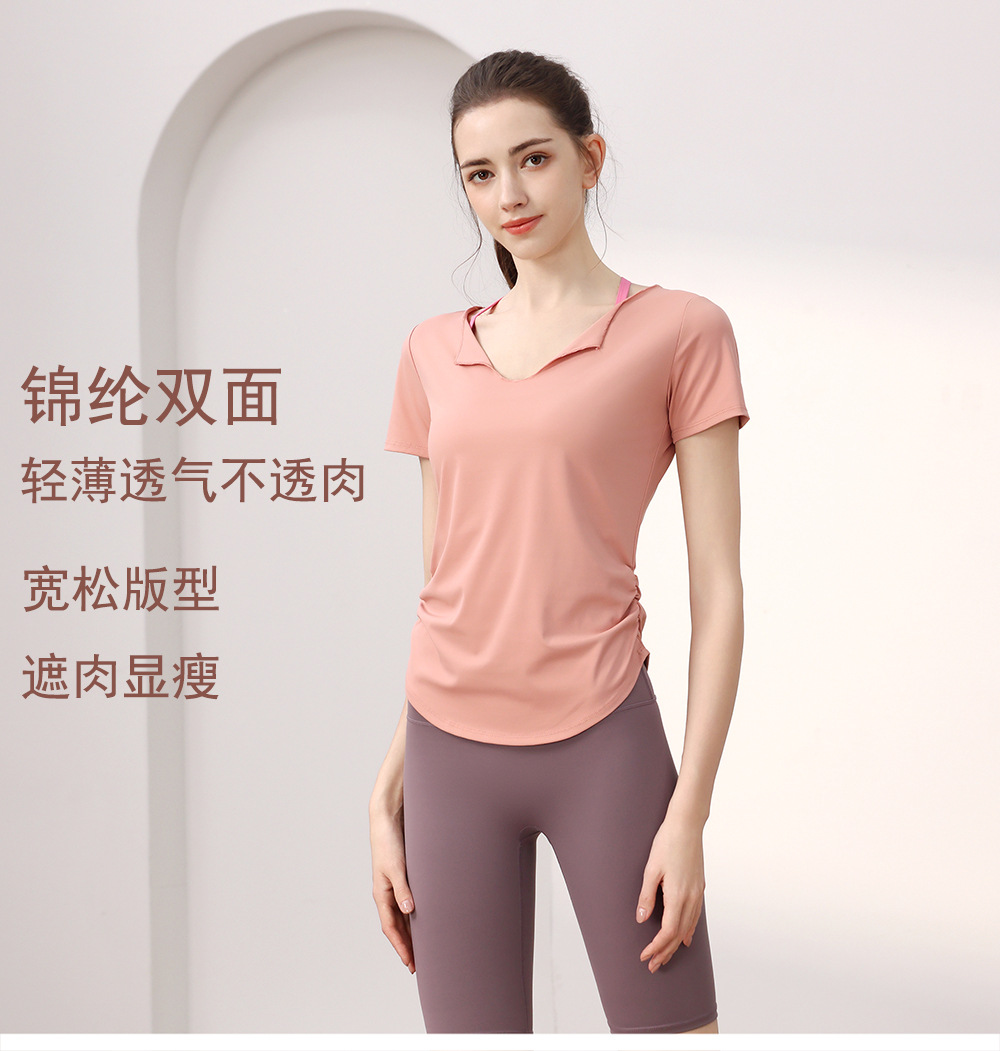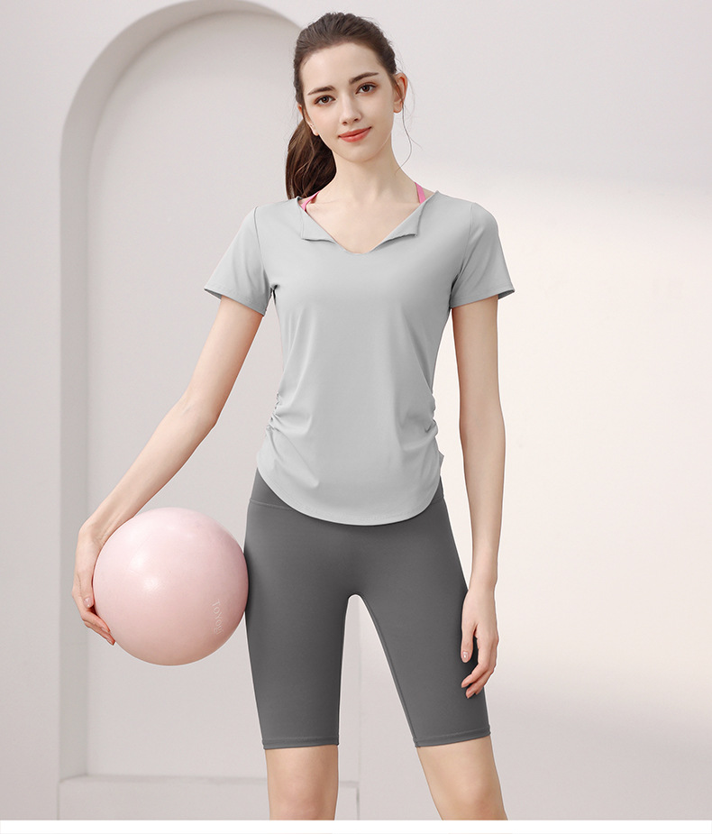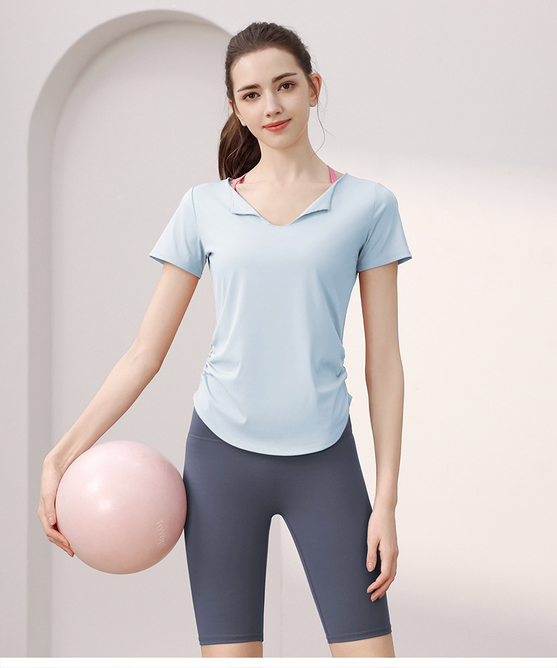 요가 의류 여성용 라젤 우아한 필라테스 훈련 여름 스포츠 최고 빠른 건조 통기성 달리기 피트니스 반팔스토어 가기