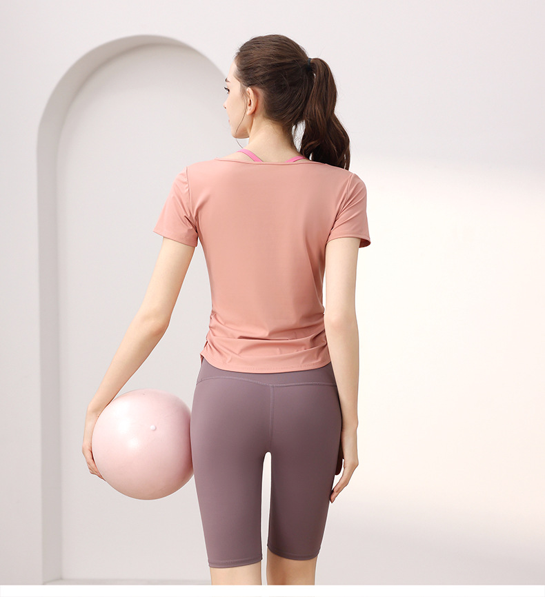 요가 의류 여성용 라젤 우아한 필라테스 훈련 여름 스포츠 최고 빠른 건조 통기성 달리기 피트니스 반팔