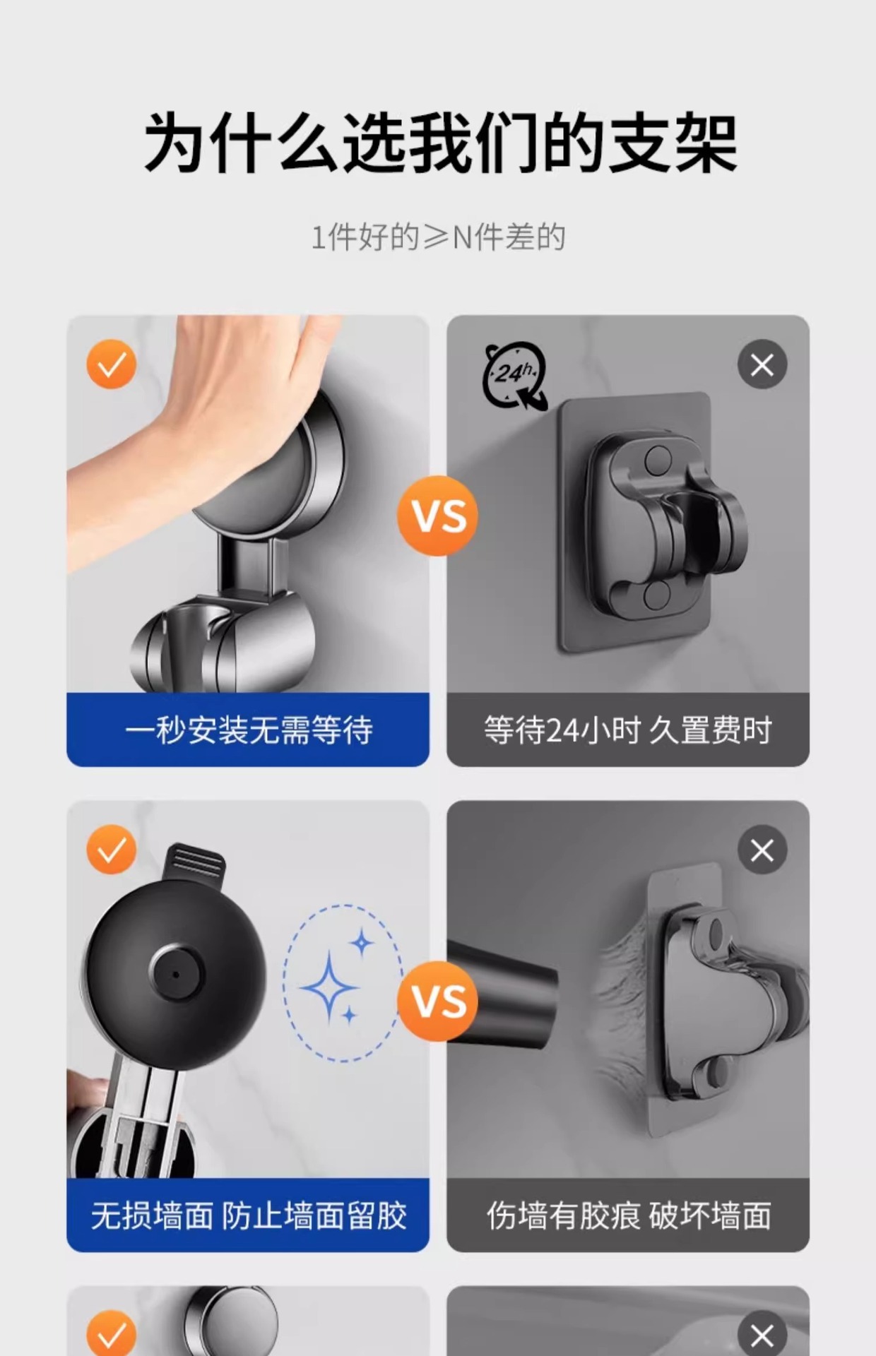 흡입 컵 샤워 헤드 홀더 욕실 샤워 헤드 홀더 레인 샤워 헤드 액세서리 탈착식 조절 가능 펀치 프리 베이스스토어 가기