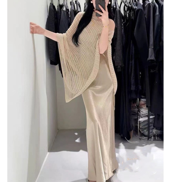 여름 새로운 선 스크린 블라우스 여성의 우아한 올 매치 할로우 니트 박쥐 소매 목도리 케이프 탑