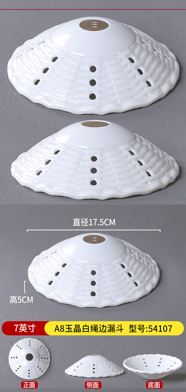 • 7inch A8 옥 크리스탈 화이트 로프 에지 깔때기 54107