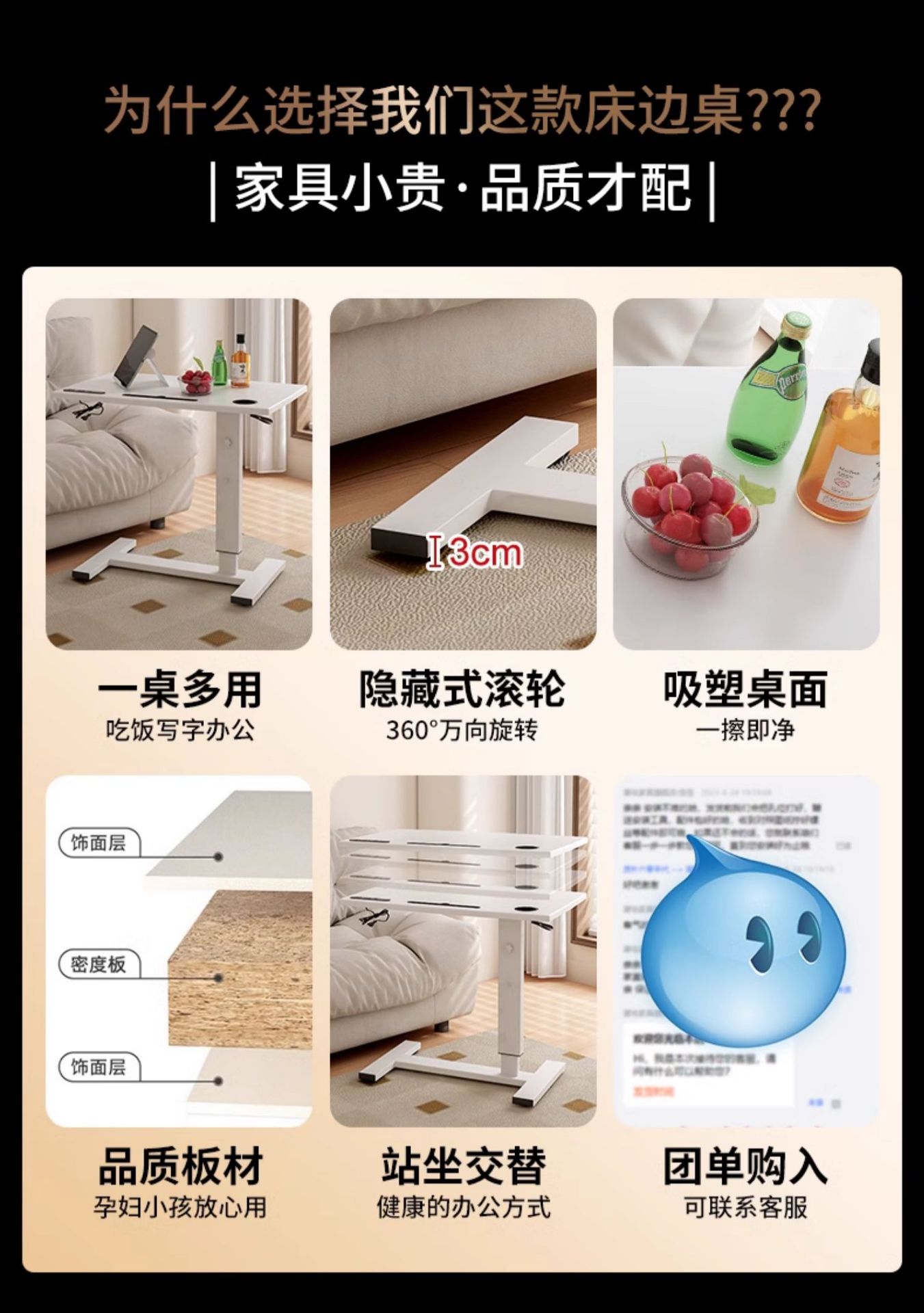 침대 옆 테이블 이동식 리프팅 사무실 홈 침실 침대 컴퓨터 책상 학습 책상 접이식 테이블 p^스토어 가기