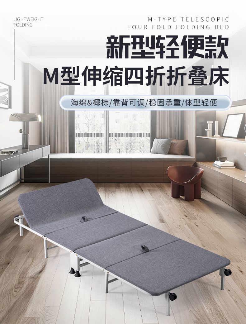 신형 경량 낮잠형 접이식 싱글 침대, 4단 접이식 침대 등받이, 조절 가능하고 안정적이며 내구성이 뛰어나고 가벼운 체형스토어 가기
