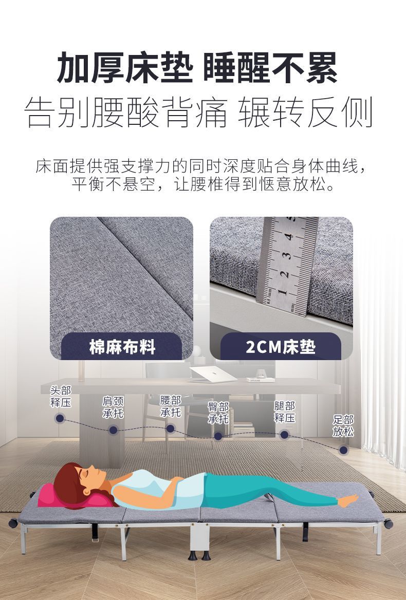 신형 경량 낮잠형 접이식 싱글 침대, 4단 접이식 침대 등받이, 조절 가능하고 안정적이며 내구성이 뛰어나고 가벼운 체형