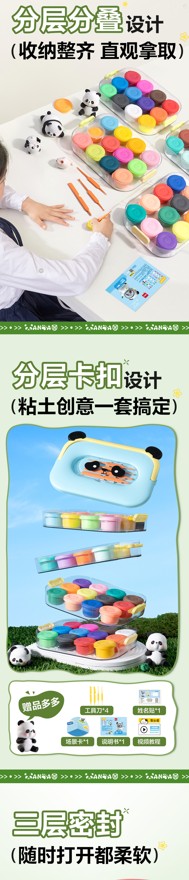 델리 XM888 팬더 캐스팅 도구 상자 초경량 점토 유치원 어린이 대용량 컬러 점토 세트