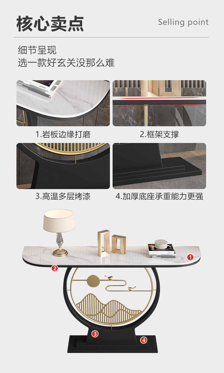 라이트 럭셔리 록 보드 입구 테이블 현대 간단한 홈 새로운 중국 스타일 장식 아트 엔드 뷰 창조적 인 테이블 벽 입구 테이블스토어 가기