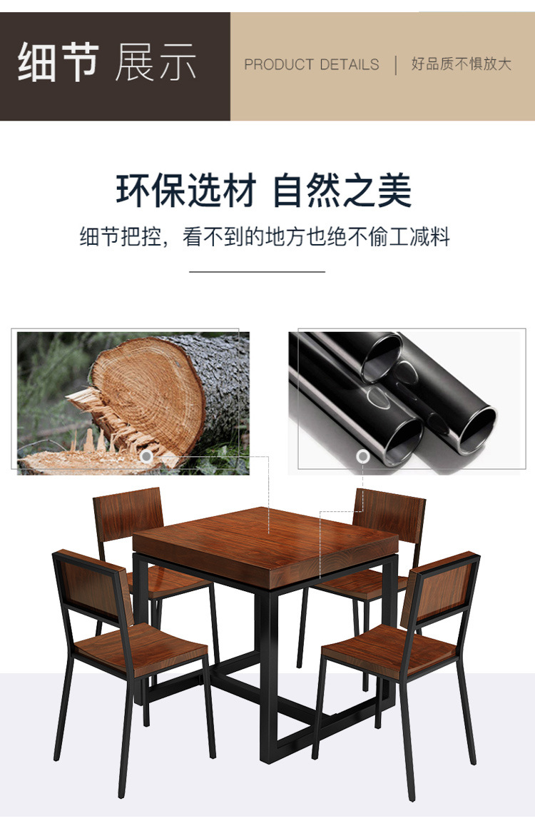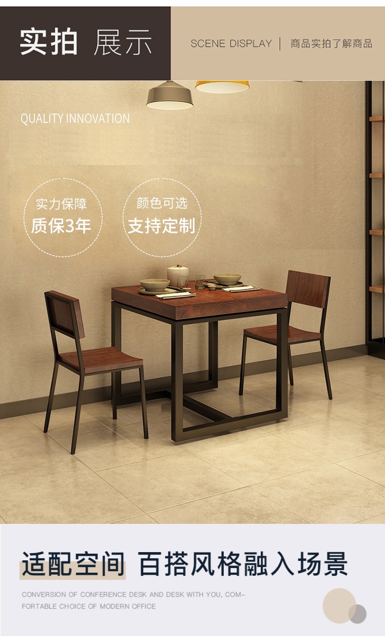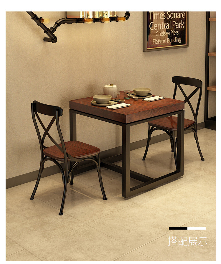 철제 커피 레스토랑 스낵 디저트 밀크티 숍 식탁과 의자 조합 케이터링 사각형 작은 사각형 단단한 나무 테이블스토어 가기