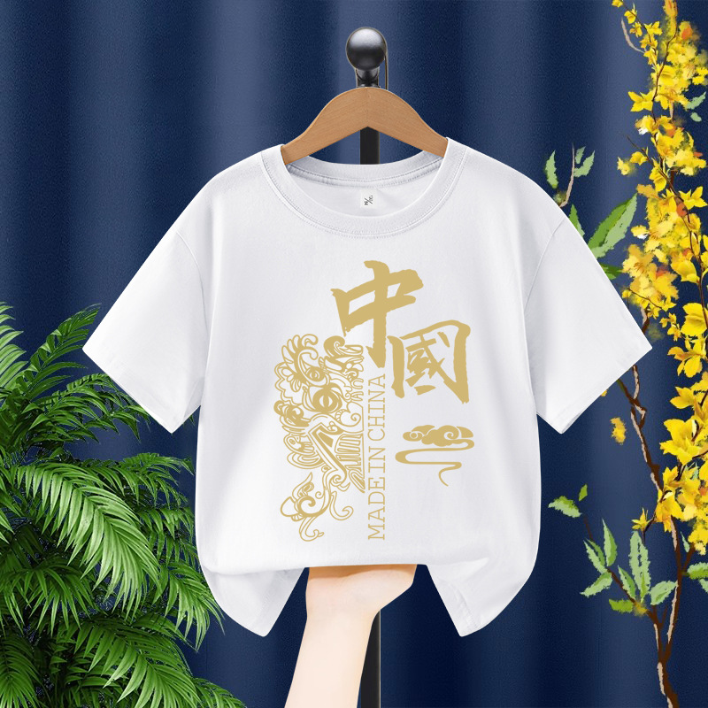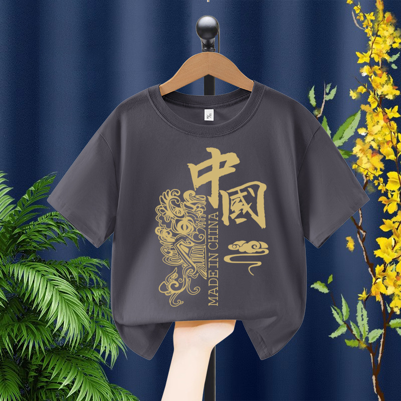 소년 반팔 티셔츠 2025 중국 스타일 인쇄 패턴 어린이 여름 코튼 탑 유행 소년 아동복스토어 가기