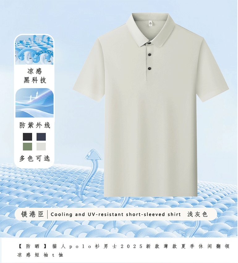[멀버리 실크 심리스 기술 함유] 남성용 반팔 티셔츠 폴로 셔츠 자외선 차단 쿨 폴로 셔츠 여름
