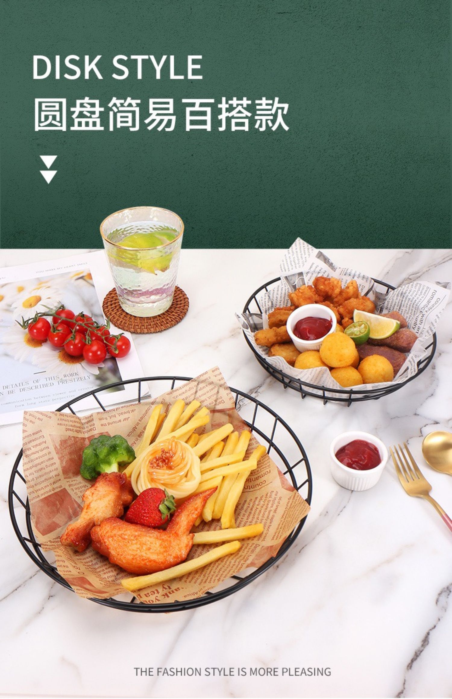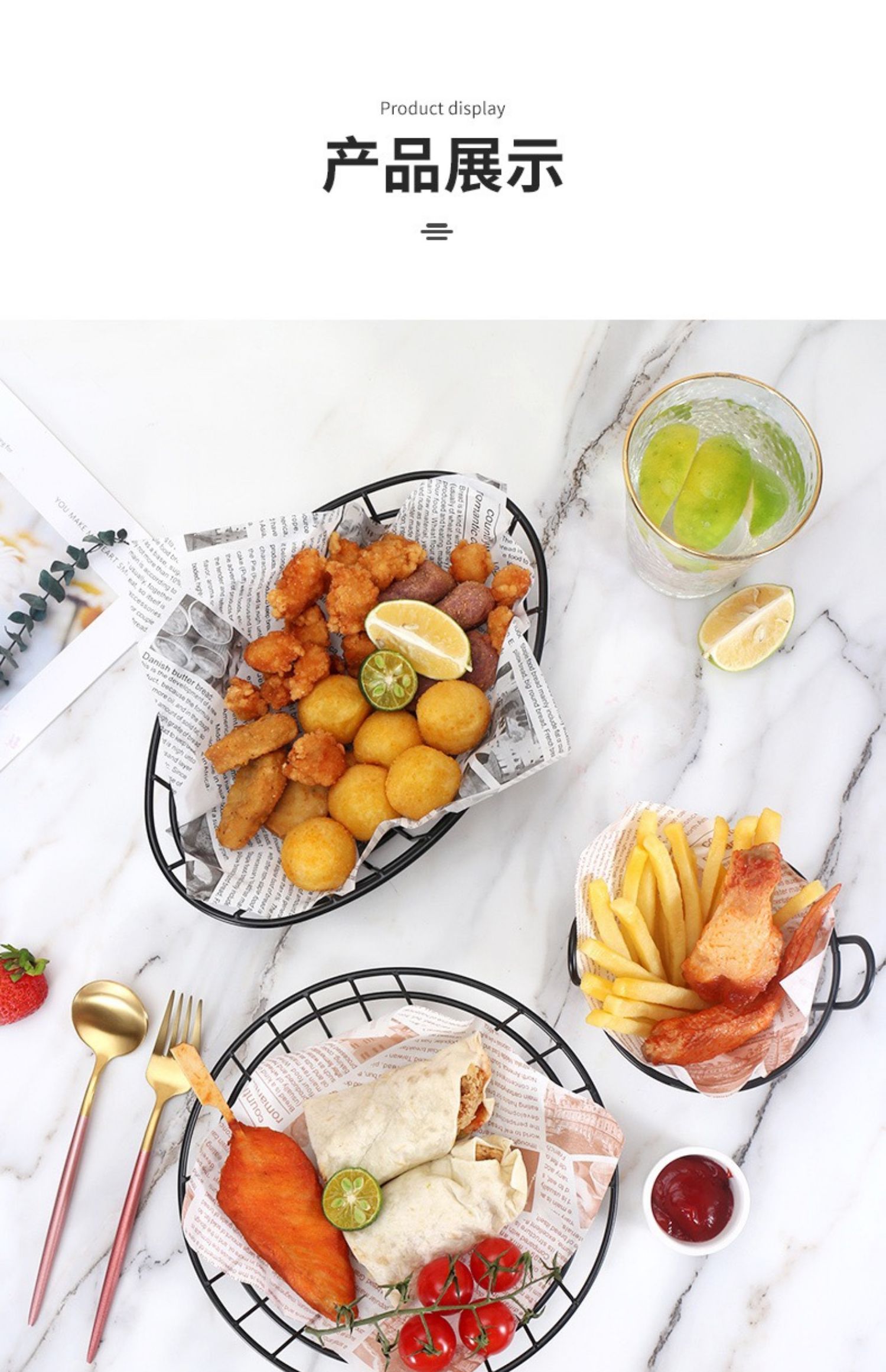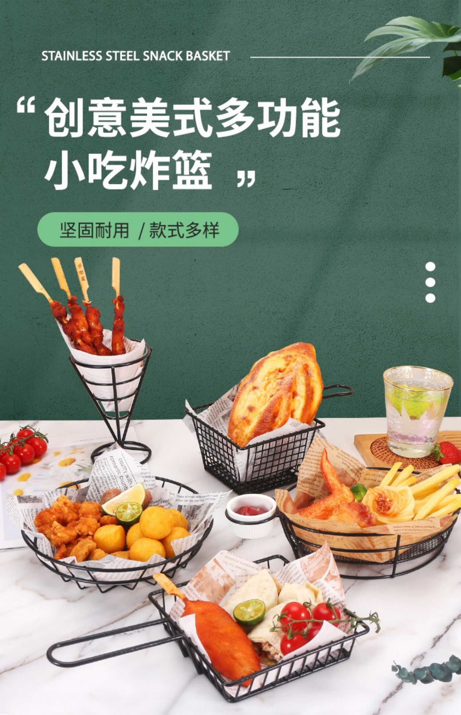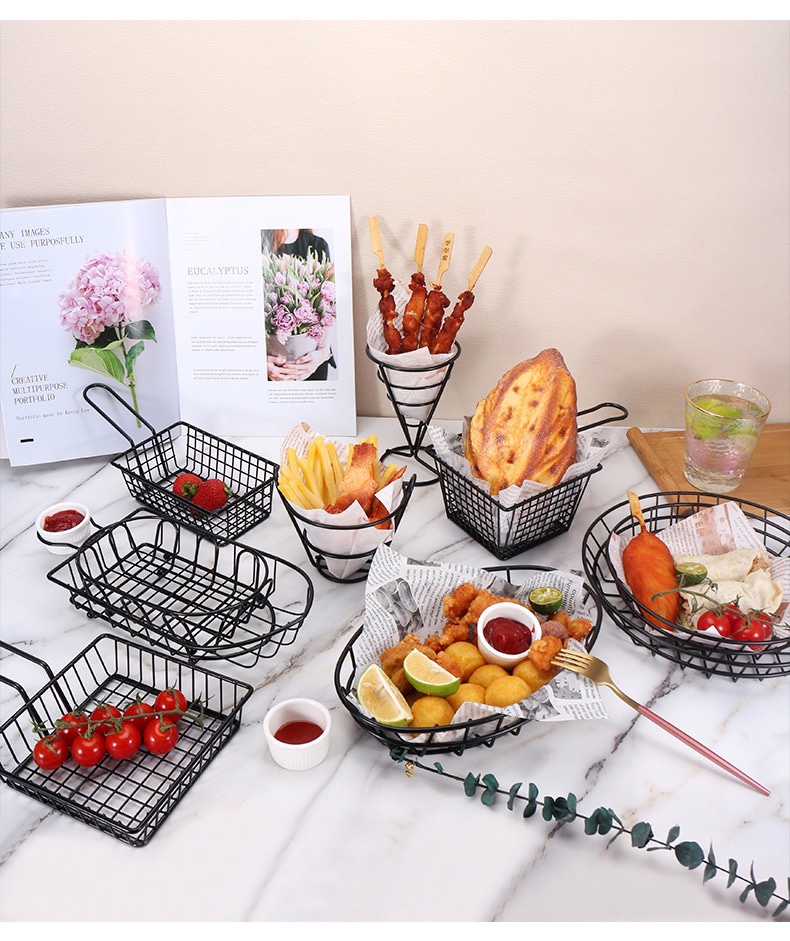 감자 튀김 바구니 스낵 바구니 크리 에이 티브 스테인레스 스틸 프라이드 치킨 튀김 음식 닭 날개 접시 접시 컨테이너 바 레스토랑