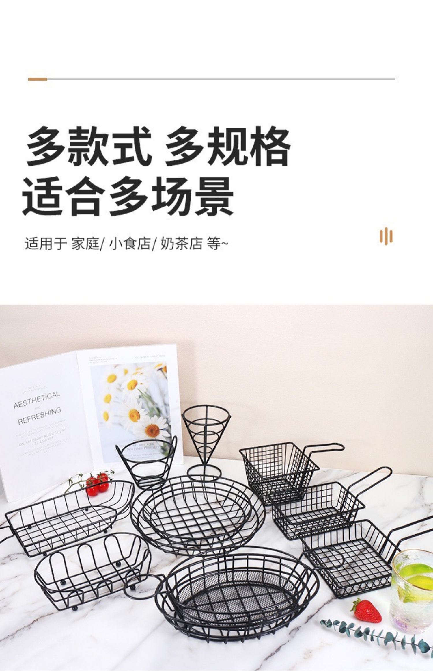 • 검정색(사각형) 스낵바구니(얕은)