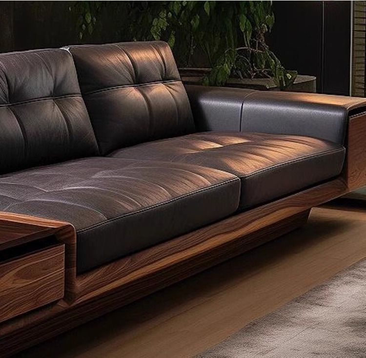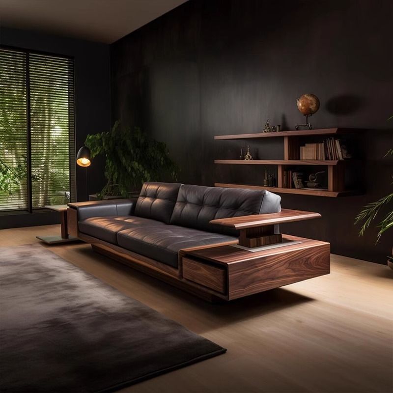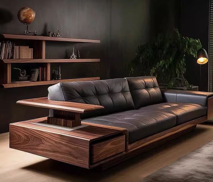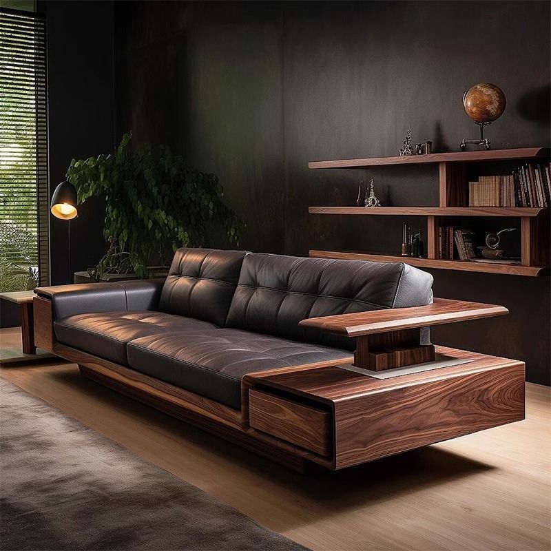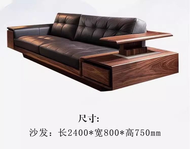 새로운 중국 북미 블랙 호두 솔리드 우드 소파 거실 하이 엔드 라이트 럭셔리 솔리드 우드 스트레이트 로우 가죽 소파 대형 아파트스토어 가기