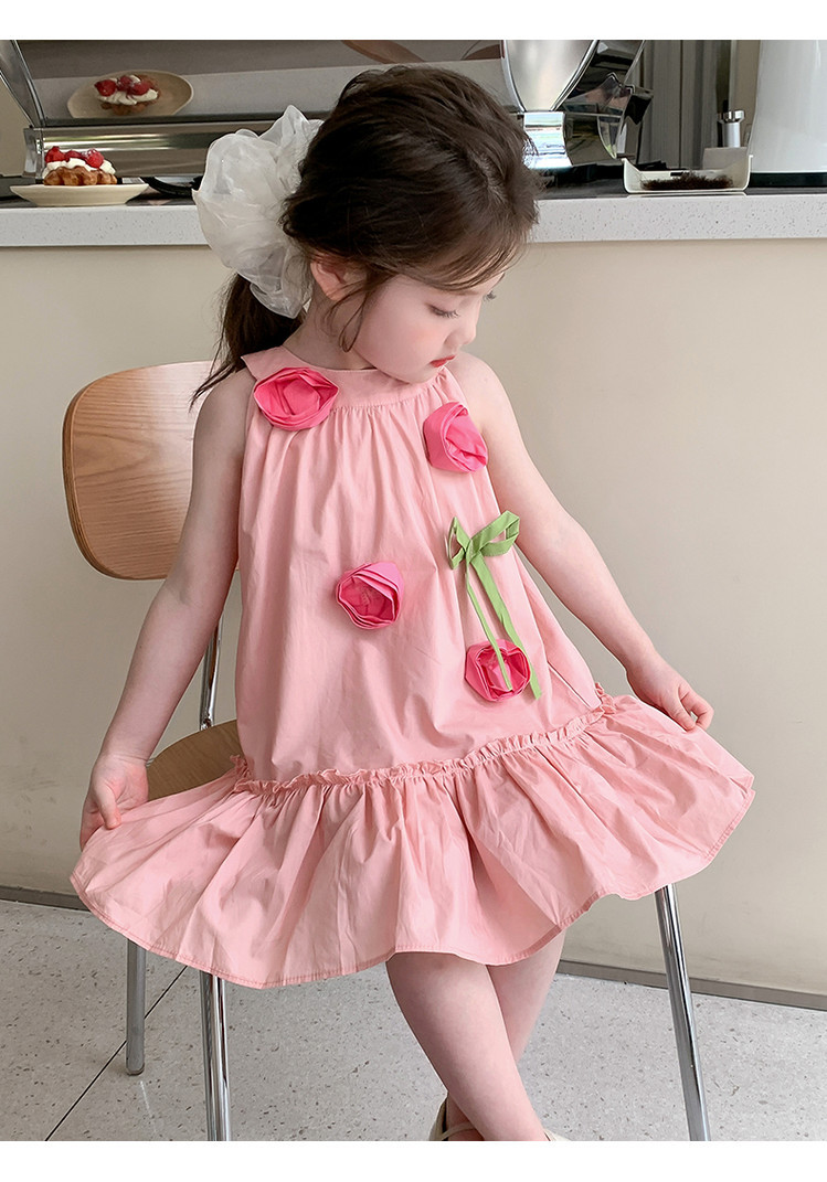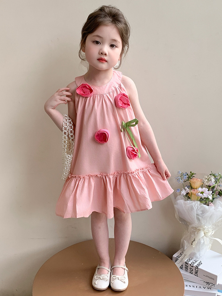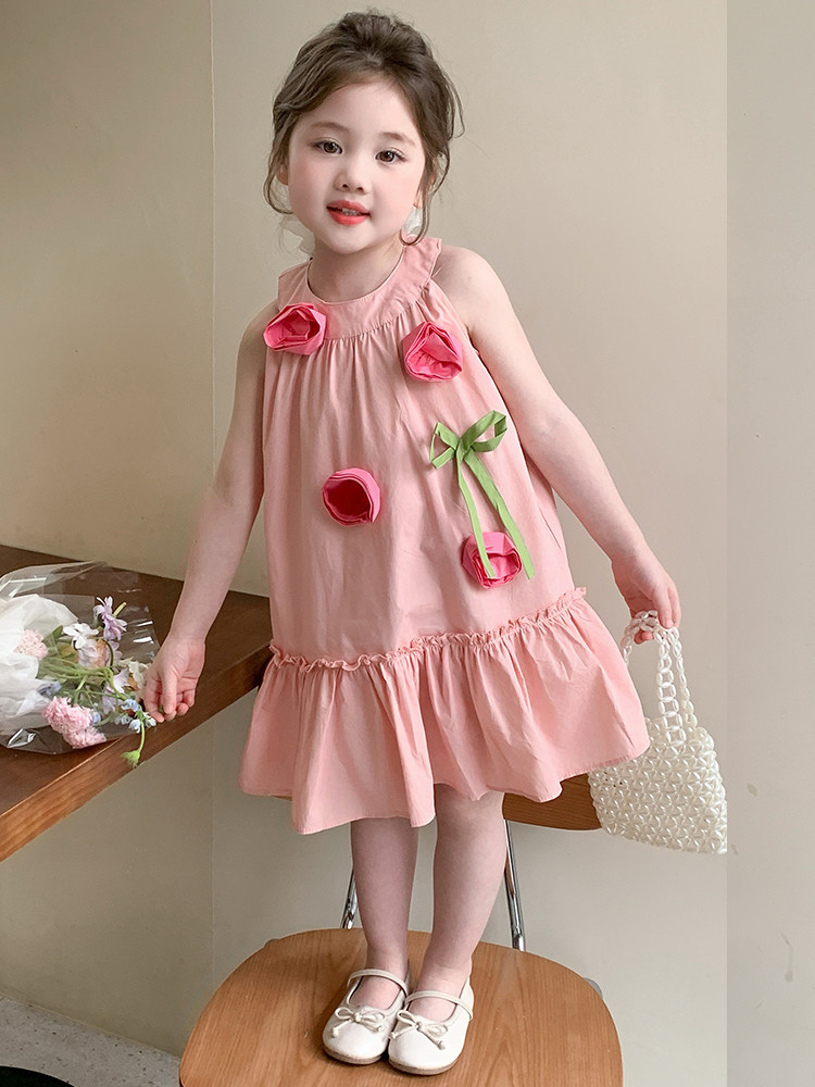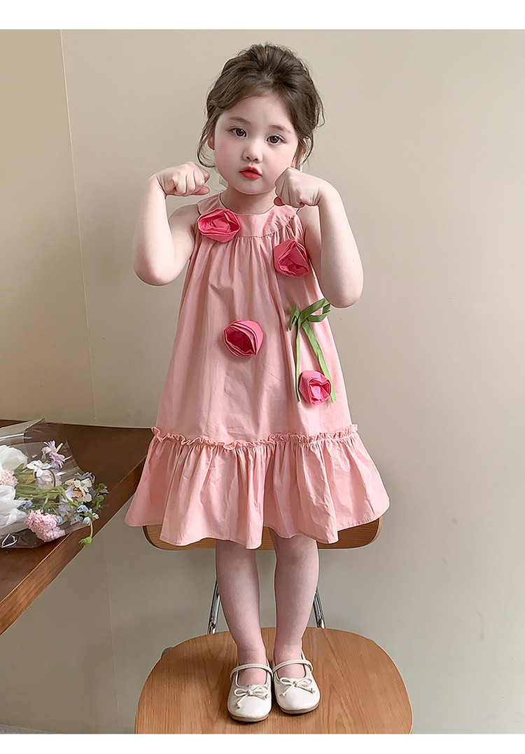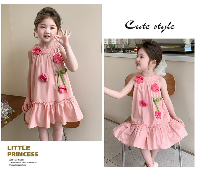 소녀 슬링 원피스 2025 새로운 스타일 아기 소녀의 러플 스커트 어린이 3 차원 꽃 Vise 치마스토어 가기