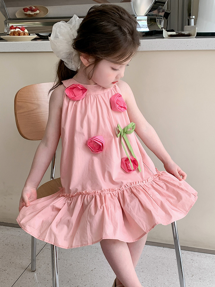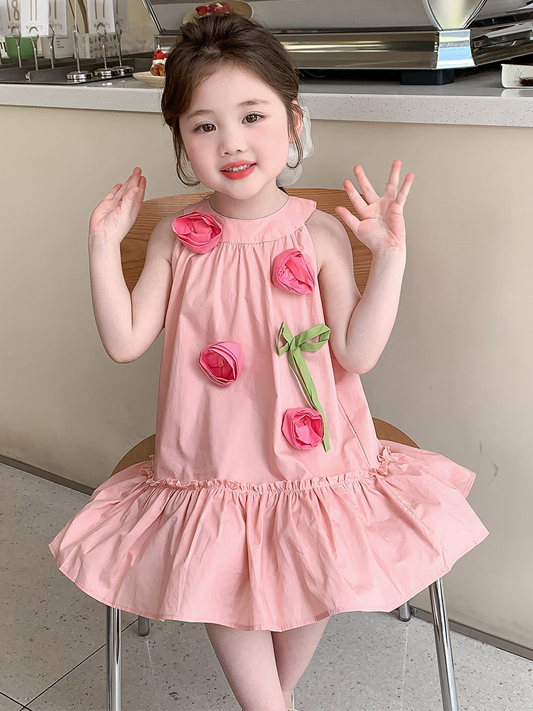 소녀 슬링 원피스 2025 새로운 스타일 아기 소녀의 러플 스커트 어린이 3 차원 꽃 Vise 치마