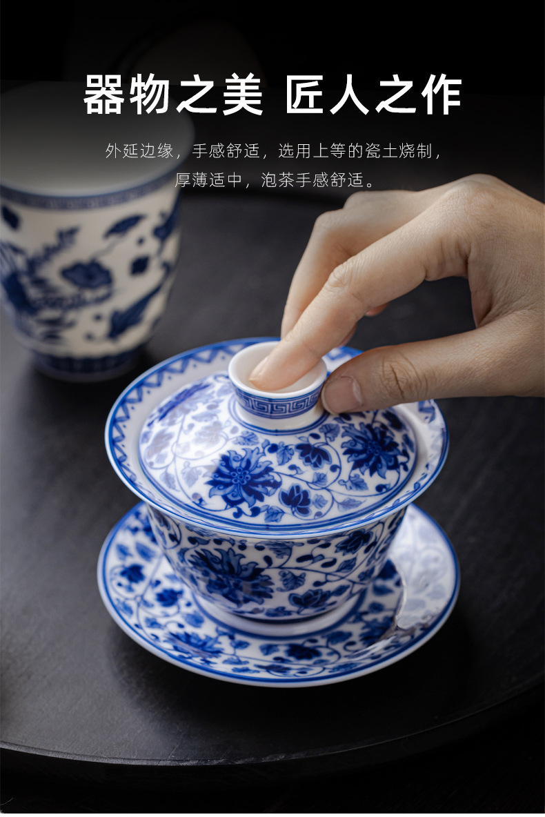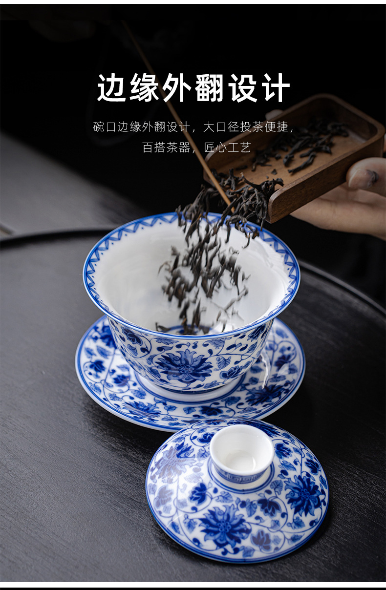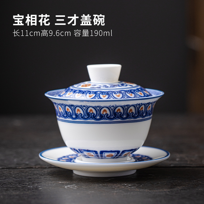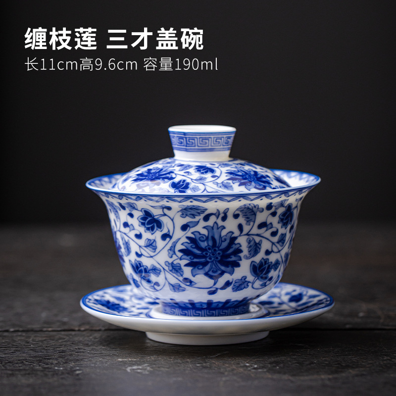 청백색 린트 옥 Sancai 뚜껑이 있는 볼, 복고풍 대용량 연꽃 싱글 비뜨거운 세라믹 티컵스토어 가기