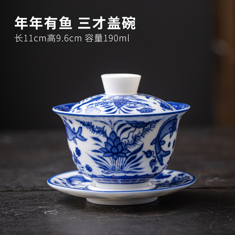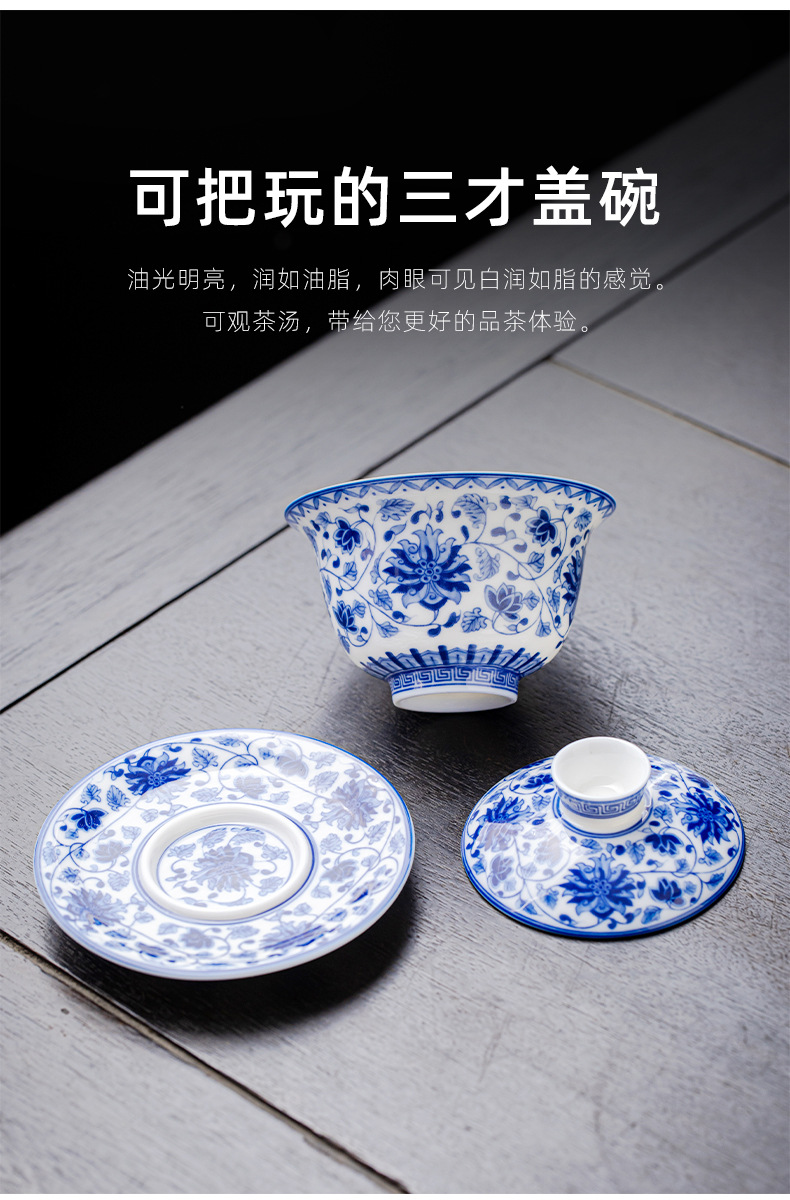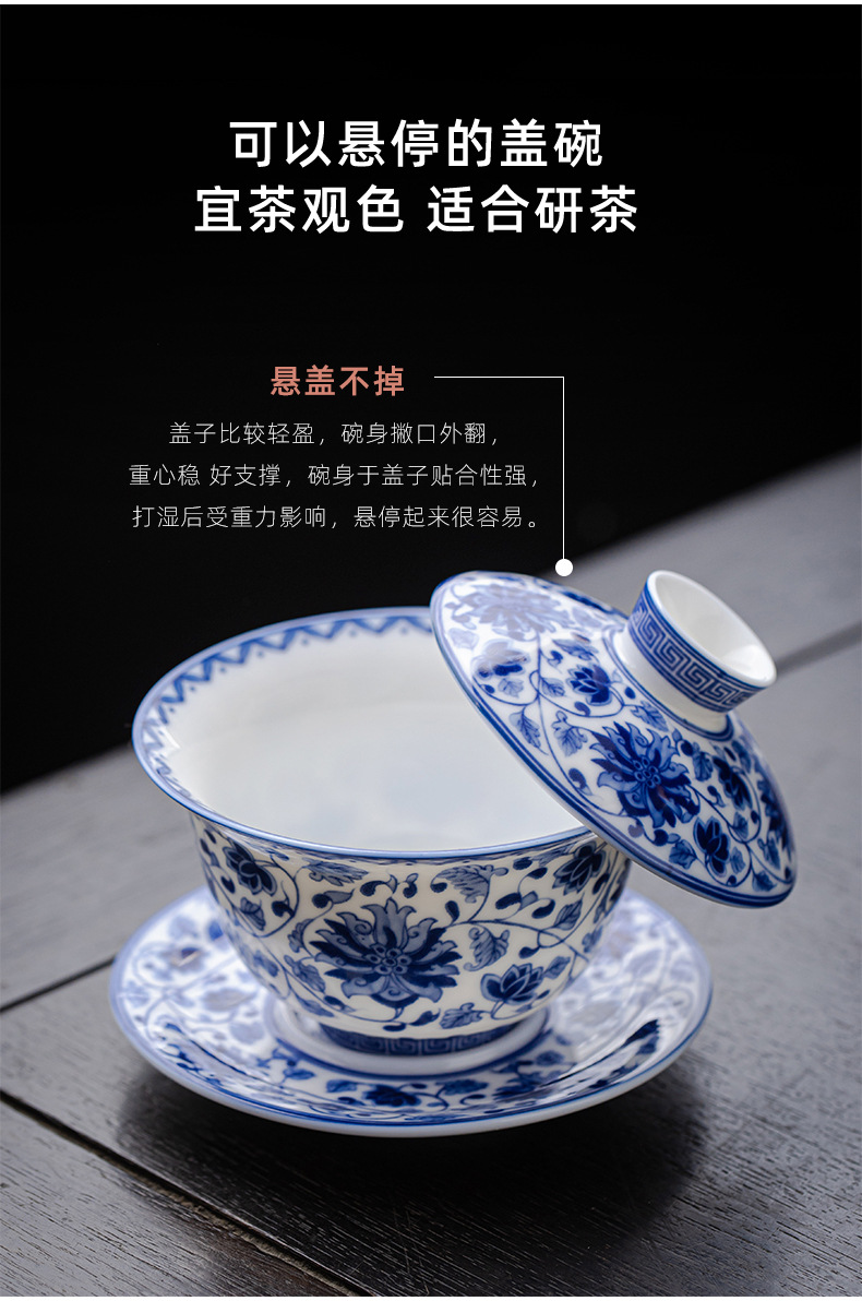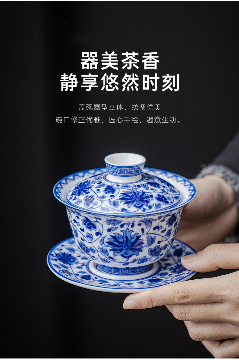 청백색 린트 옥 Sancai 뚜껑이 있는 볼, 복고풍 대용량 연꽃 싱글 비뜨거운 세라믹 티컵스토어 가기