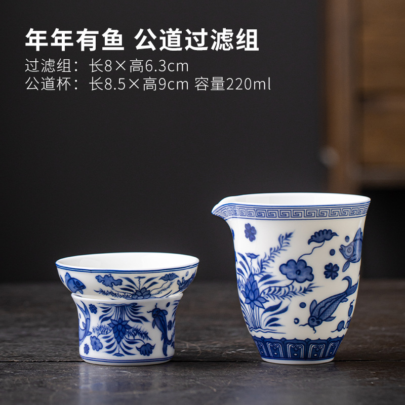 • 파란색과 흰색 [물고기와 조류 무늬] 찻잔 4개