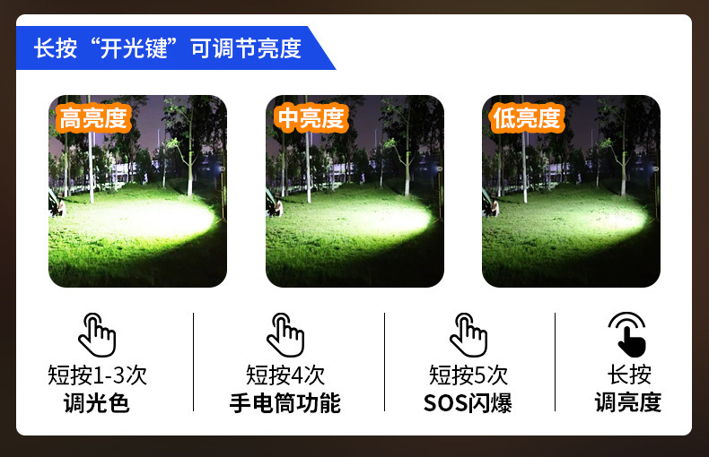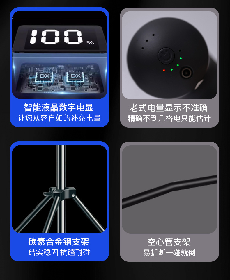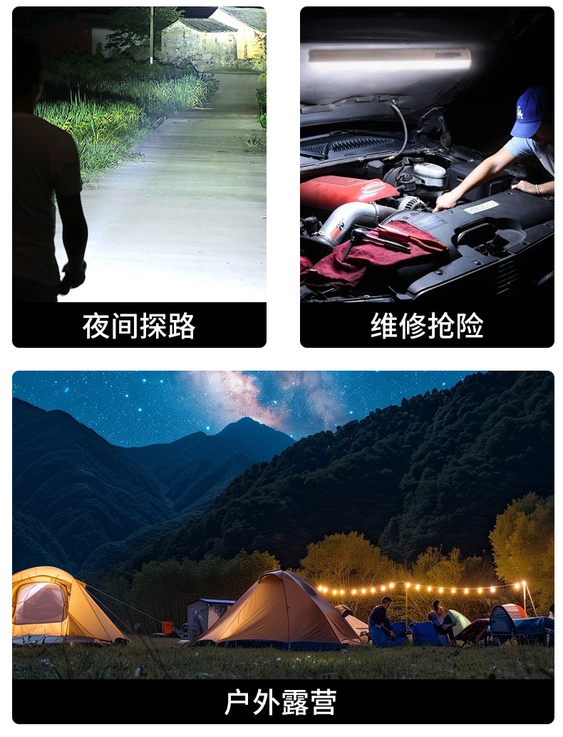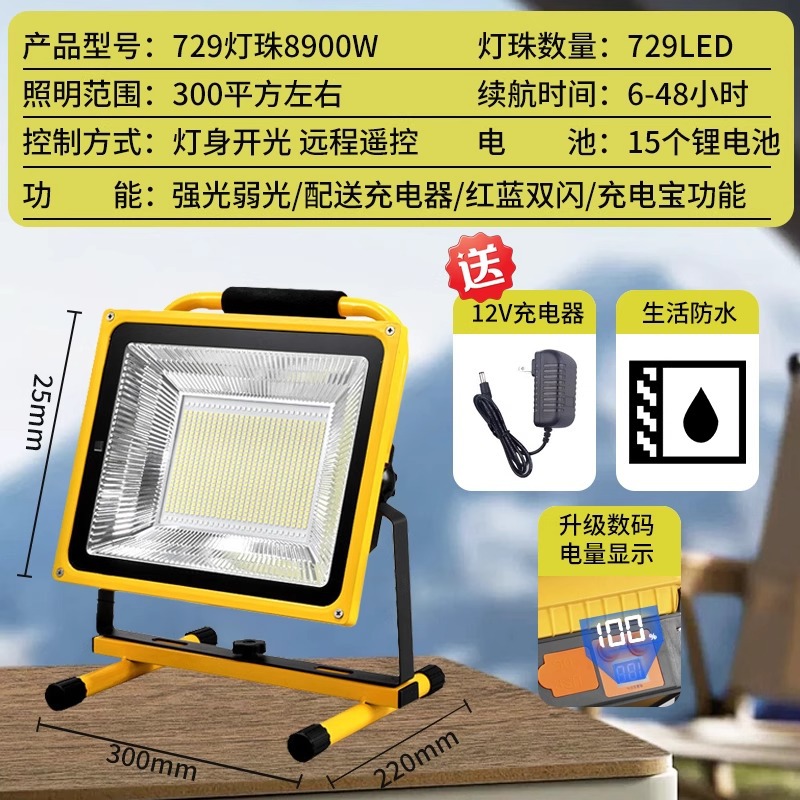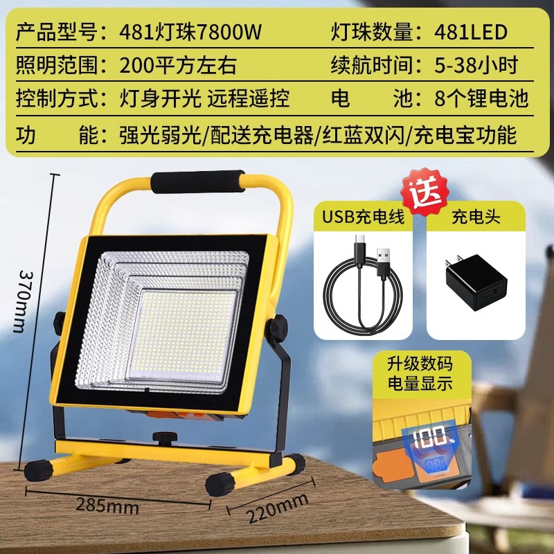 • 고휘도 10000W 유형 - 배터리 수명 4~8시간 - 조명 50㎡- 보조 배터리 기능 - 3색 조명 변경