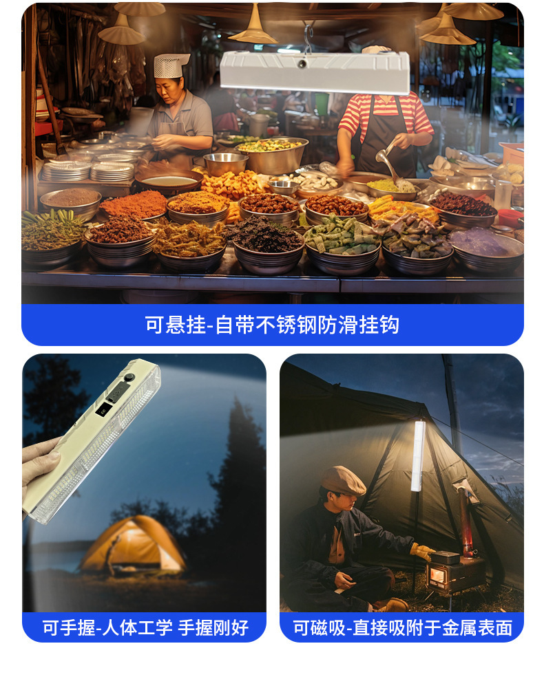 충전식 캠핑 조명, 야외 매점, 야시장 조명, 정전 비상 이동식 유지 보수, 휴대용 LED 스트립 조명