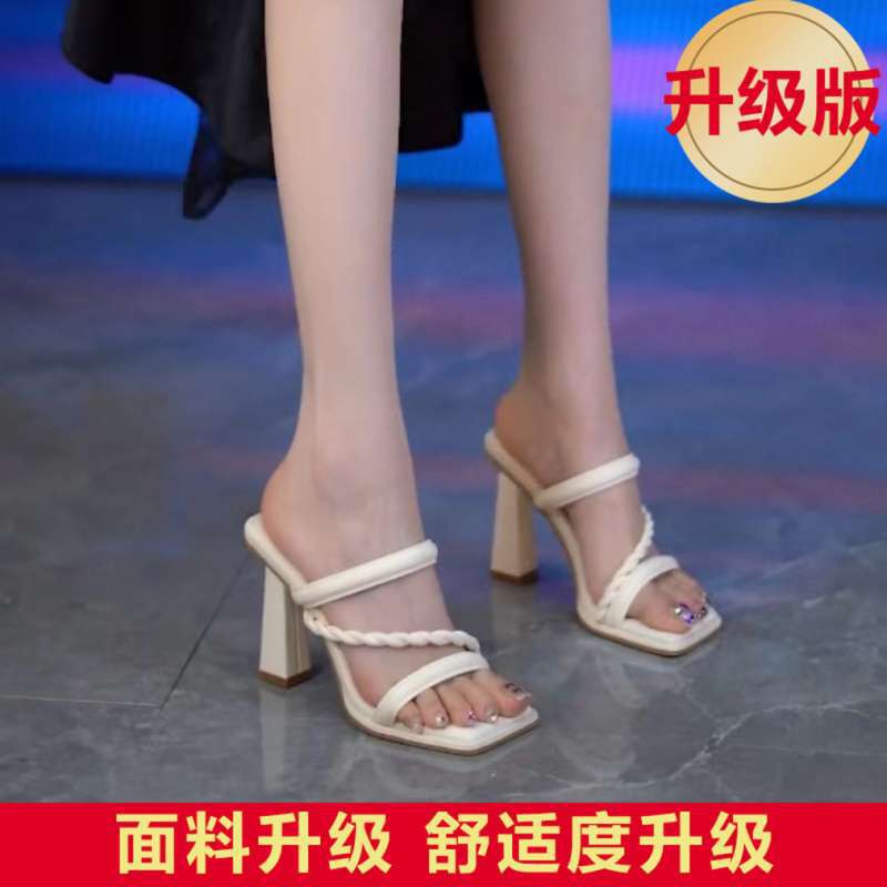 여름 여성 패션 아우터 슬리퍼, 활용도 높은 스퀘어 힐 하이힐, 2025년 신상 스퀘어 토 슬리퍼스토어 가기
