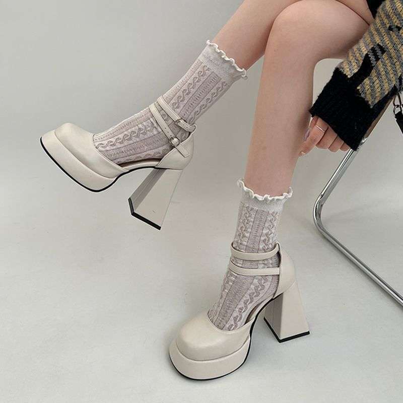 레트로 방수 플랫폼 두꺼운 굽 jk 메리 제인 신발 여성 2025 봄 새로운 높이 증가 프랑스 슈퍼 하이힐 웨딩 신발스토어 가기