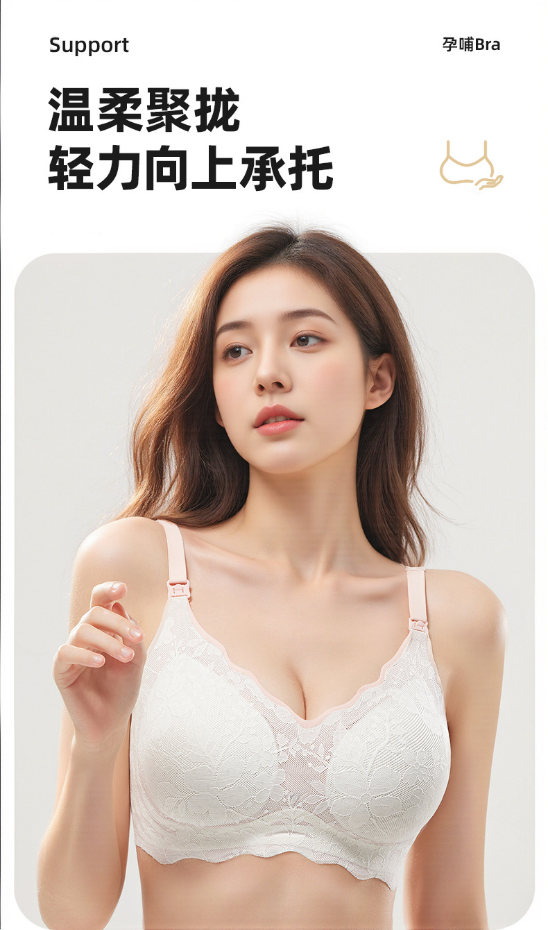 [10A 항균] 얇은 임신 수면 속옷 고정 컵 기계 임산부 원활한 레이스 간호 브래지어
