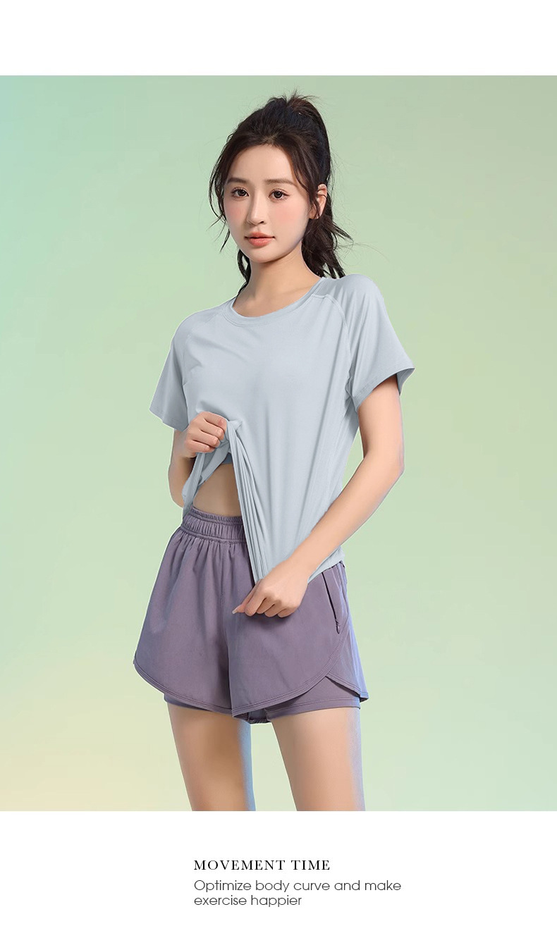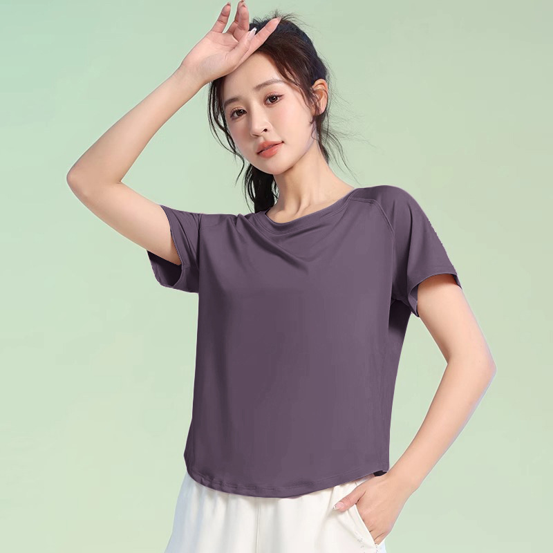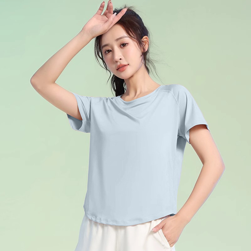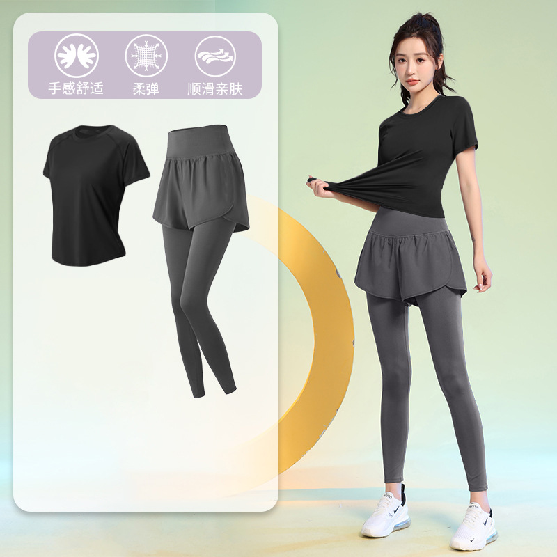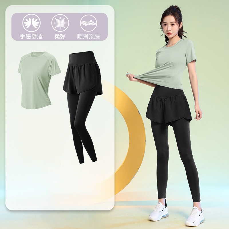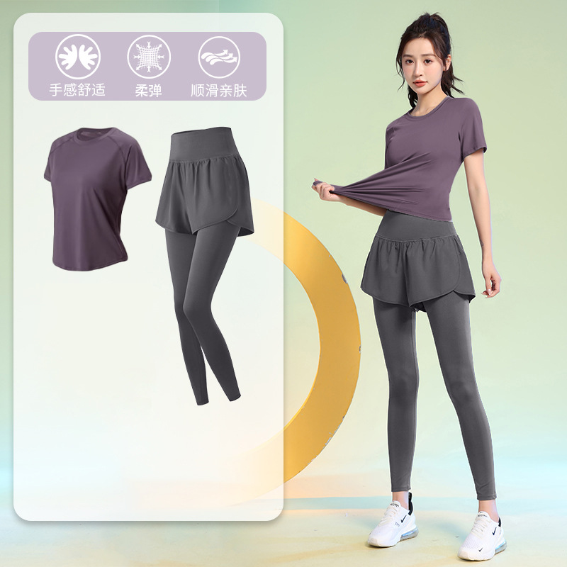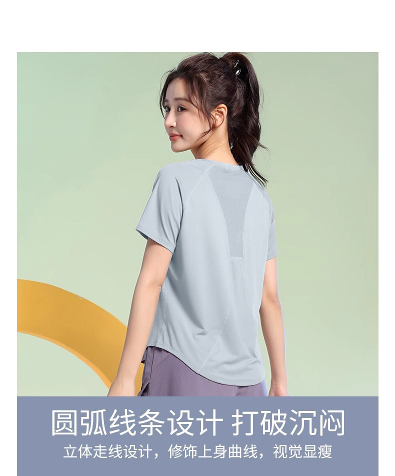 여름 얇은 야외 스포츠 세트 여성의 피트니스 느슨한 슬리밍 요가 옷 짧은 소매 탄성 빠른 건조 옷 달리기 옷스토어 가기