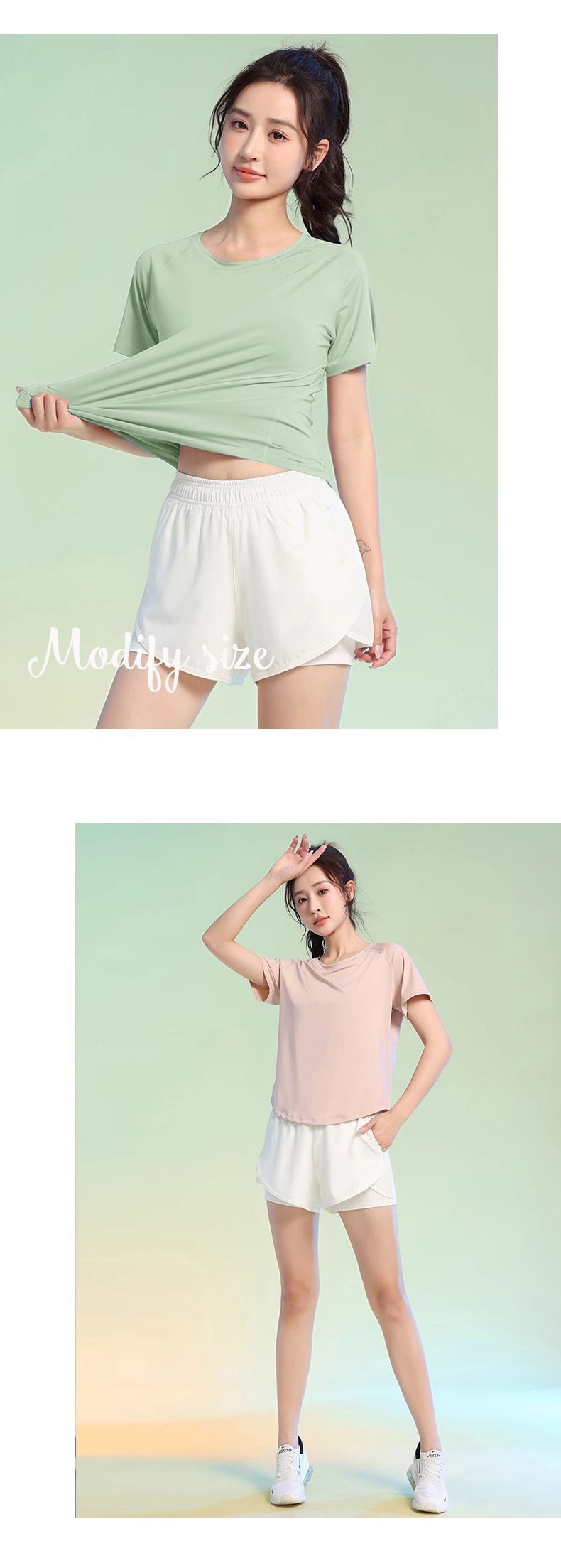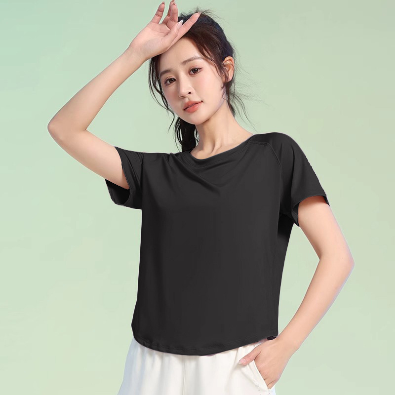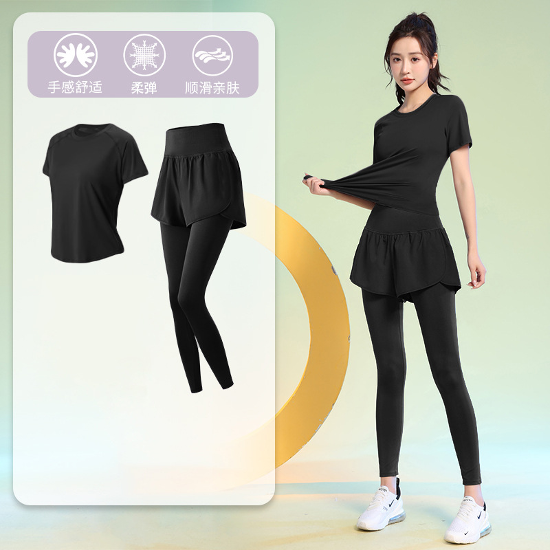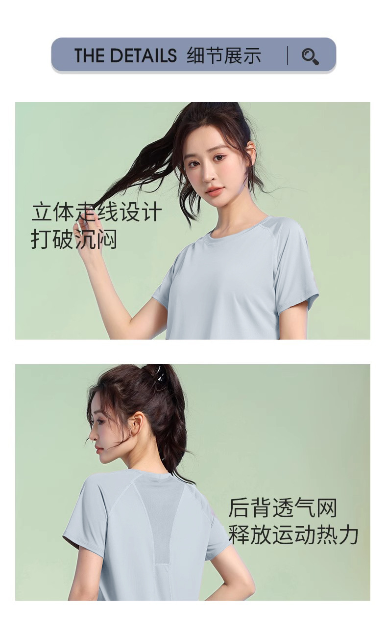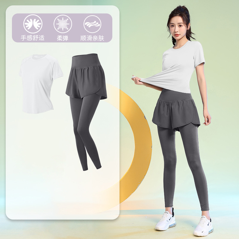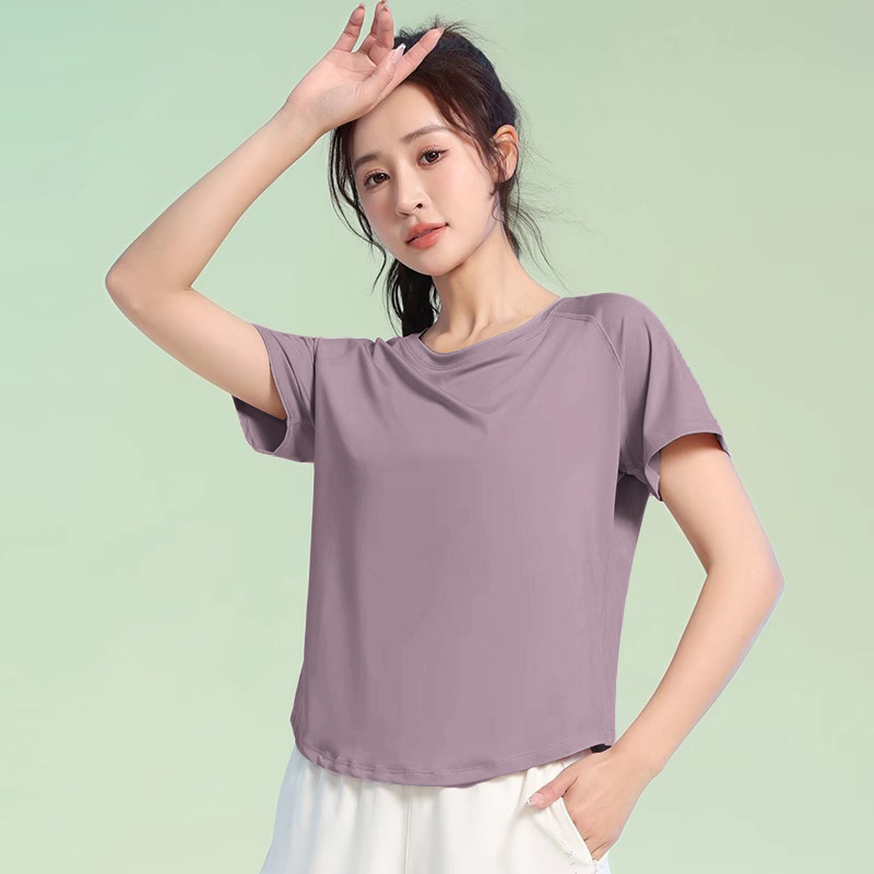 여름 얇은 야외 스포츠 세트 여성의 피트니스 느슨한 슬리밍 요가 옷 짧은 소매 탄성 빠른 건조 옷 달리기 옷스토어 가기