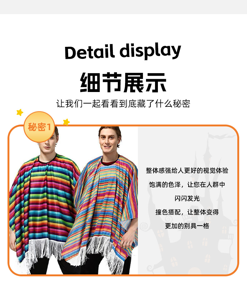 멕시코 민족 망토 다채로운 줄무늬 프린지 숄 코스프레 축제 파티 어린이 성인 공연 의상스토어 가기